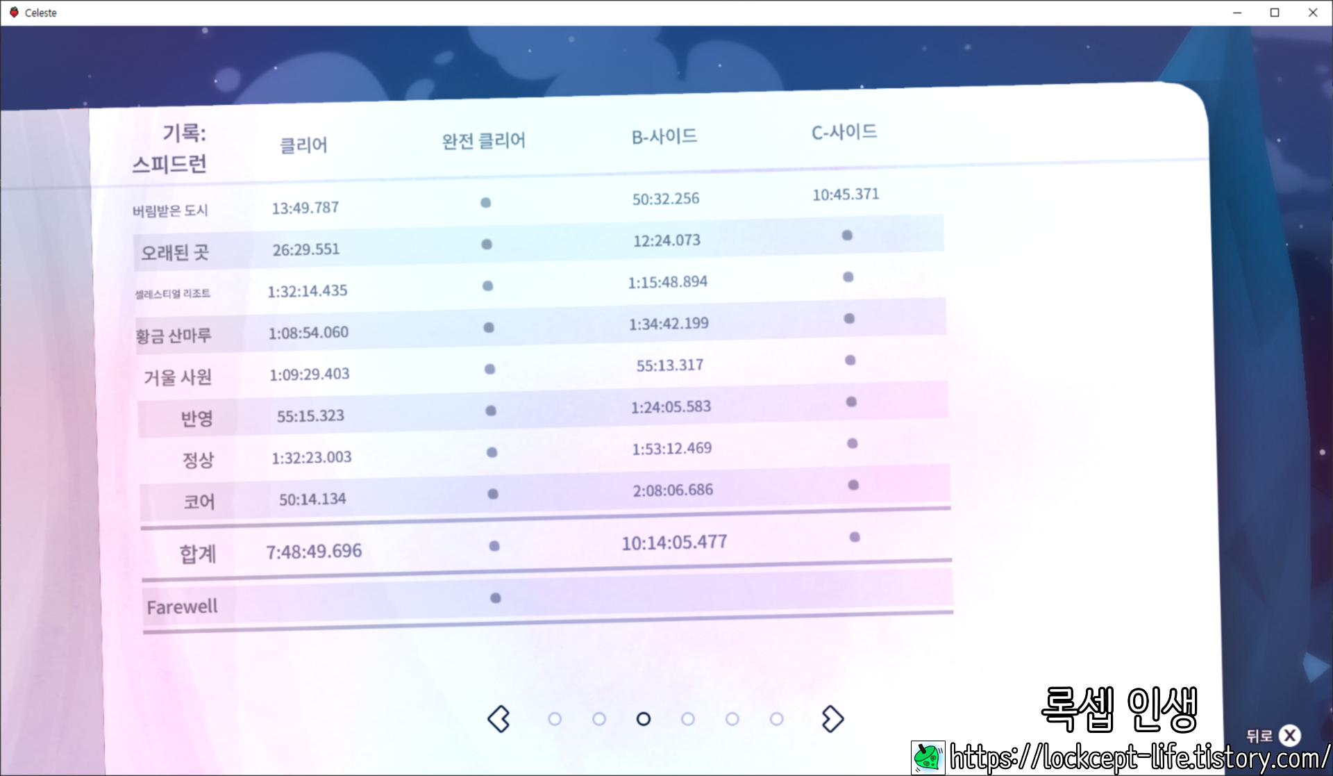 PC버전 트레일러는 아니지만 훨씬 노래가 좋아서 공유한다. Celeste는 OST가 정말 좋은 게임이다. 메이플스토리 노래가 좋은 그런 느낌..