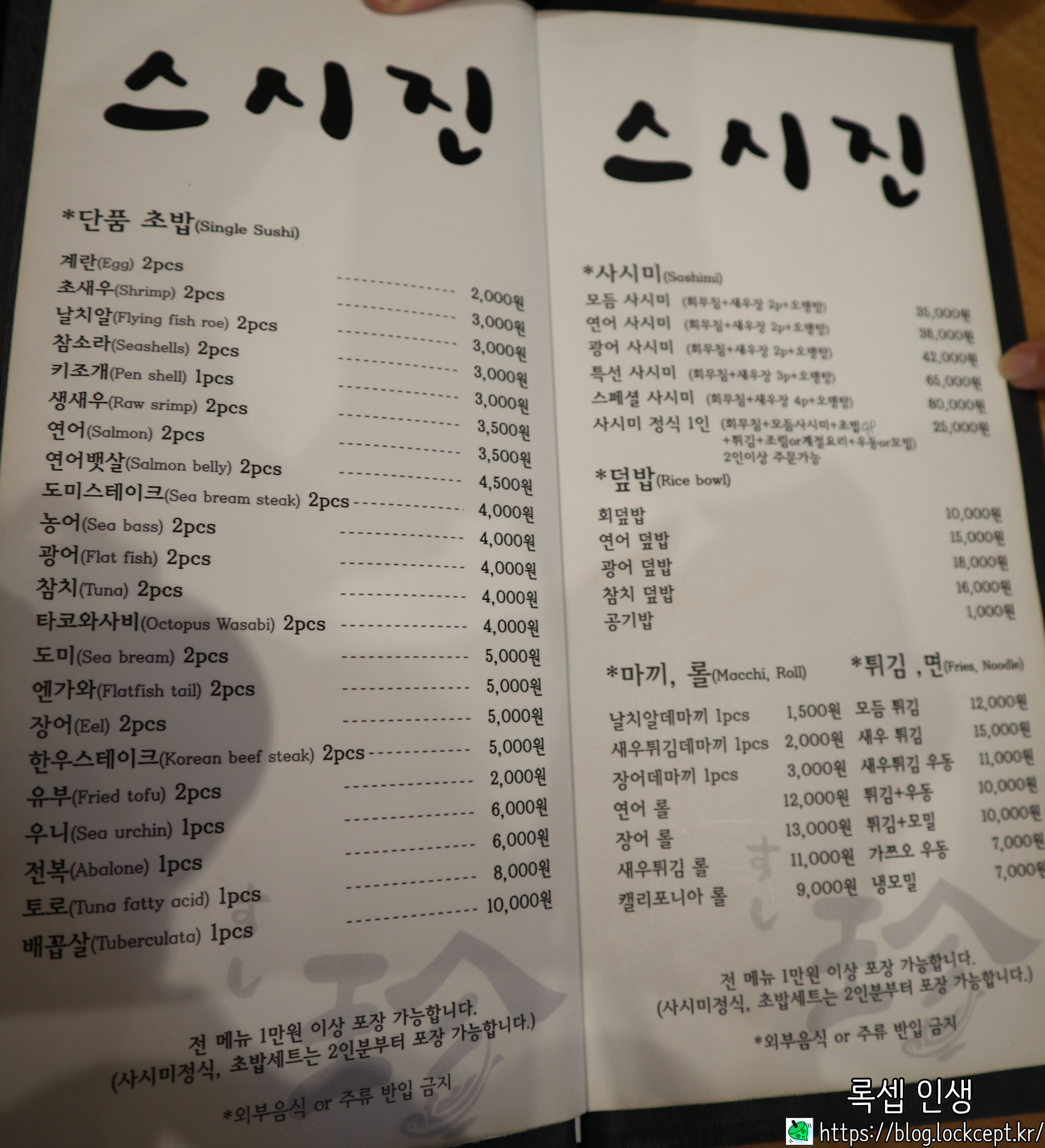 모든 메뉴 포장 됩니다!
