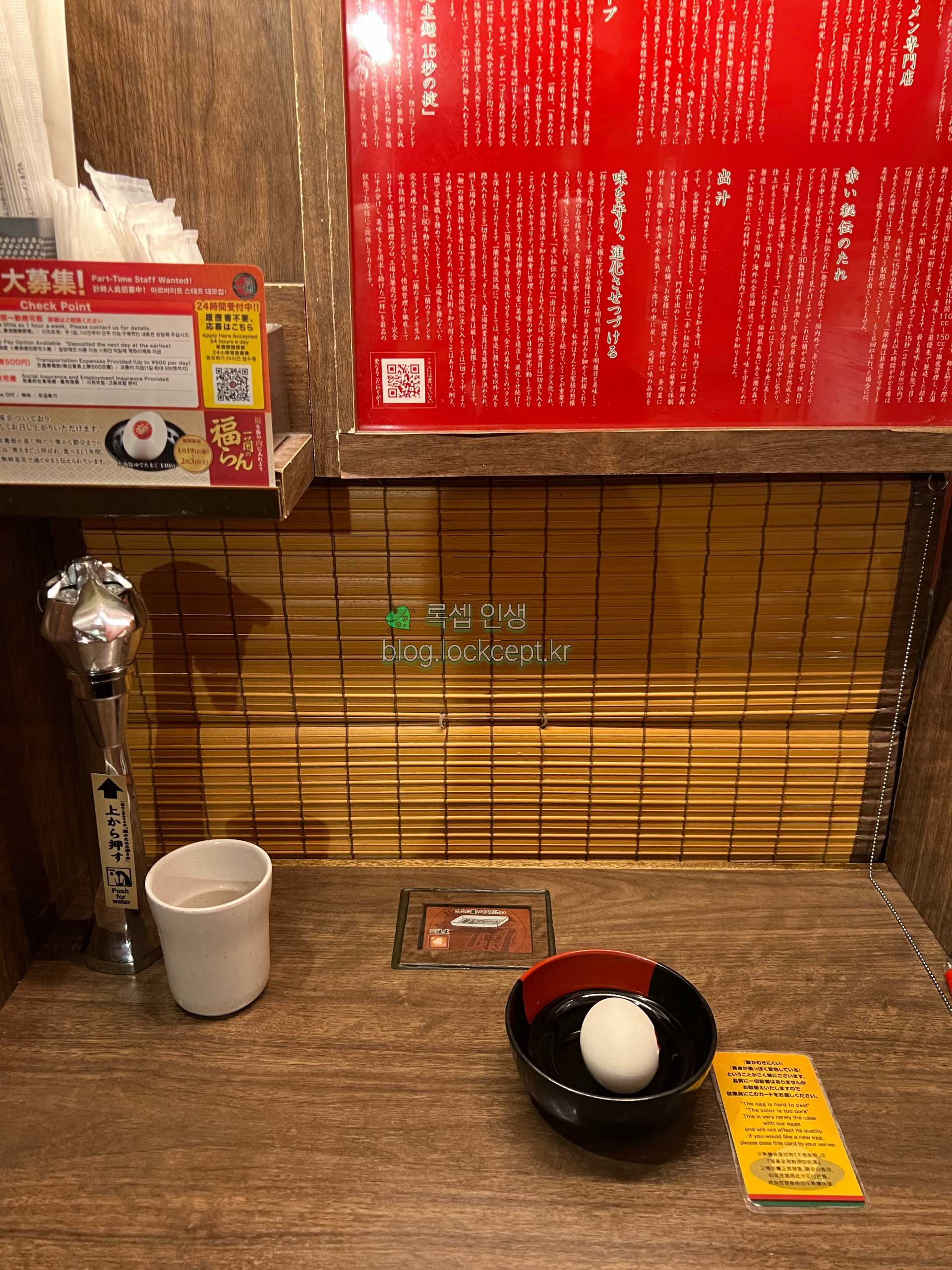 일본을 대표하는 프렌차이즈 라멘인 이치란라멘을 먹었다. 한국의 김밥천국이나 홍콩반점 급으로 지점이 많은 것 같다.