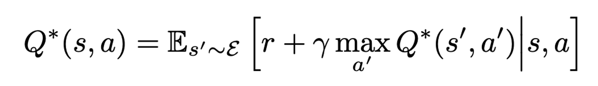 최적 행동 가치함수 Q*(s,a)는 어떤 전략을 따를 때 달성할 수 있는 최대 기대 수익으로 정의되며 벨만 방정식을 따른다. 많은 강화 학습 알고리즘의 기본 아이디어는 벨만 방정식을 따라 반복 업데이트를 통해 함수를 추정하는 것이다. 본 논문에서는 신경망에 따라 함수를 추정했다.