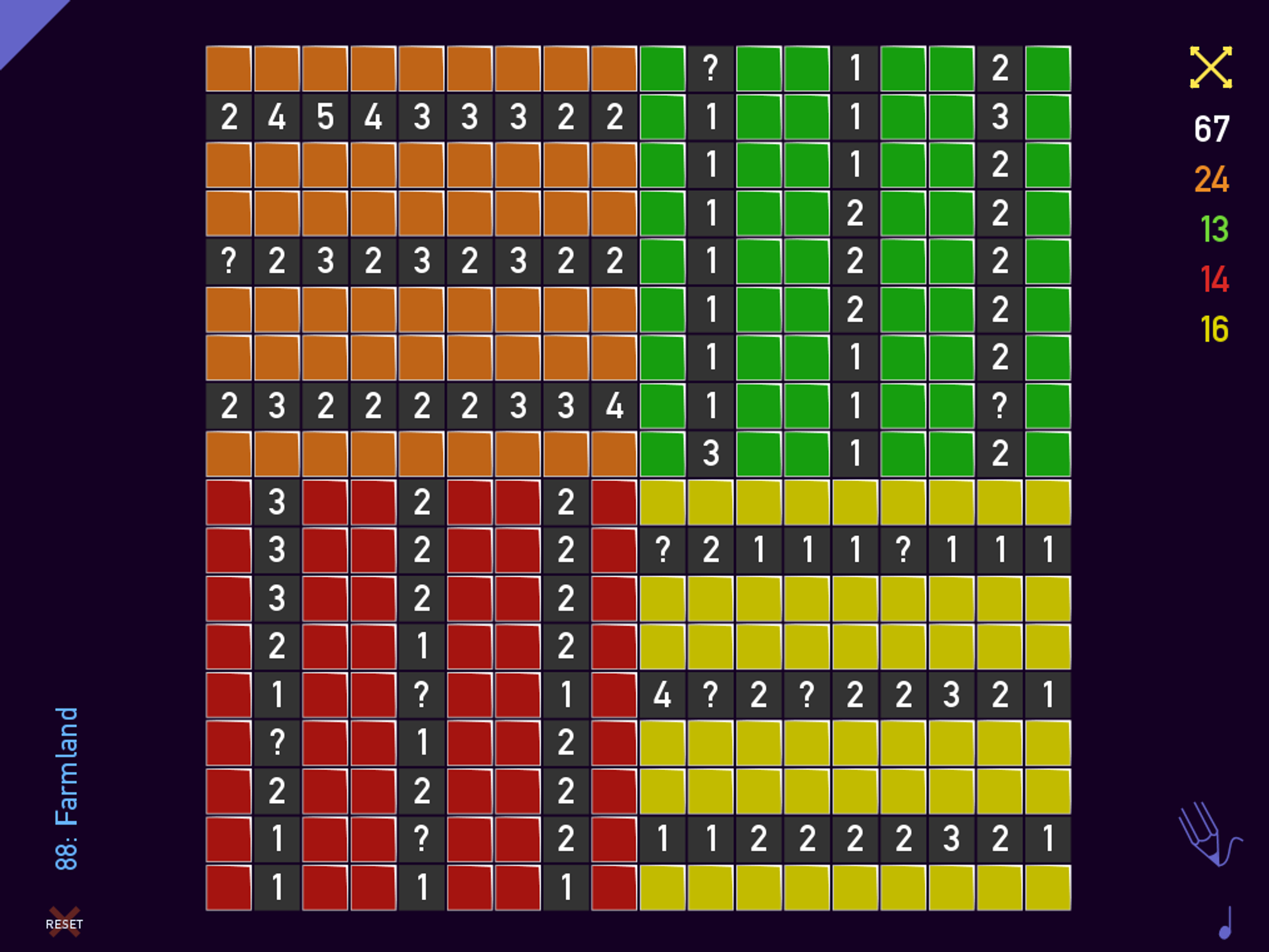 총 100개의 메인 스테이지가 있는 단순한 지뢰찾기 게임이다. 우리가 아는 지뢰찾기랑 모양은 조금 씩 다르긴 하지만, 결국 길게 설명할 규칙이 없다. 초반 10개 스테이지는 위 사진처럼 쉽고, 튜토리얼에 가까운 스테이지다.