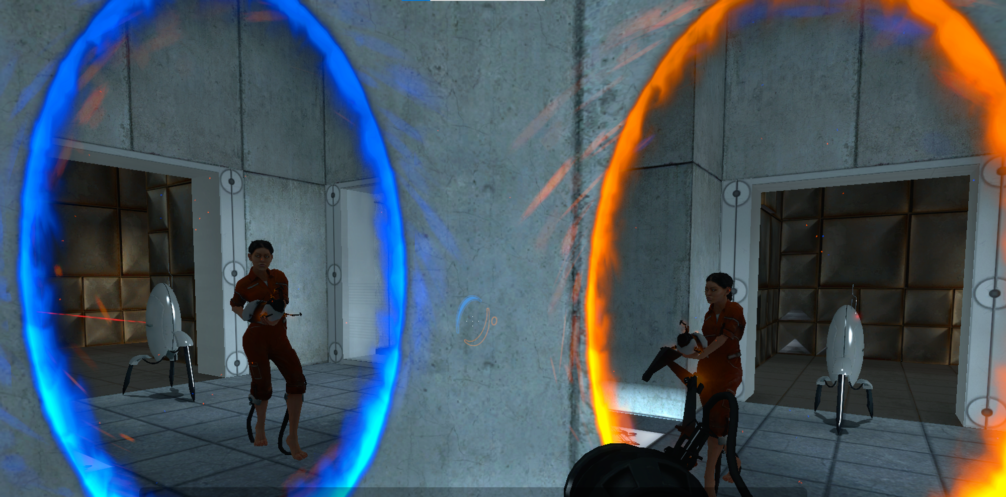 포탈1,2 모두의 근본 메카닉은 간단하다. 빨간 포탈과 파란 포탈이 서로 공간적으로 이어진다는 점이다. 포탈은 흰 벽에 쏠 수 있다. 포탈을 넘어갈 때에 물리적인 값들이 꽤나 보존된다. (각도, 속도 등)