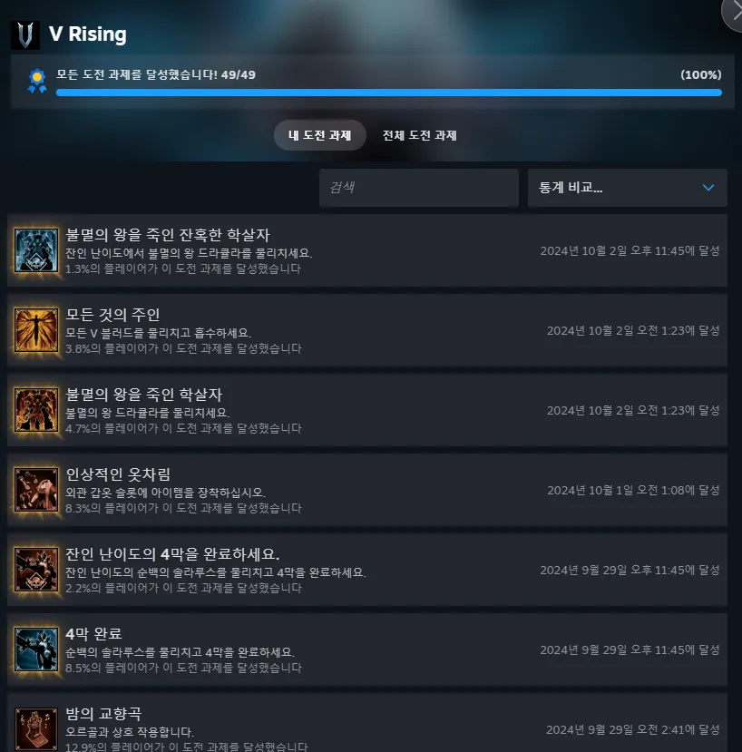 선형적인 성장 구조를 따라가기만 해도 대부분의 도전과제가 클리어된다. 그 외에 게임의 시스템을 활용해보기만 해도 추가적으로 모든 업적이 깨진다. 최종보스 잔인난이도 클리어가 제일 어려운 업적이었으므로 아주 잘 설계된 업적 시스템이라 느꼈다.