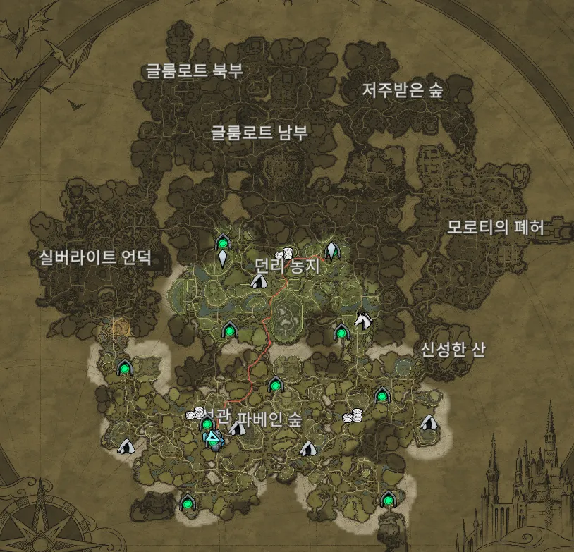처음부터 전체 맵의 크기를 알 수 있다. 각 지역들을 레벨에 따라 선형적으로 탐험하게 된다. 보스 몬스터를 차례로 잡다보면 자연스레 다음 지역을 배울 수 있다.