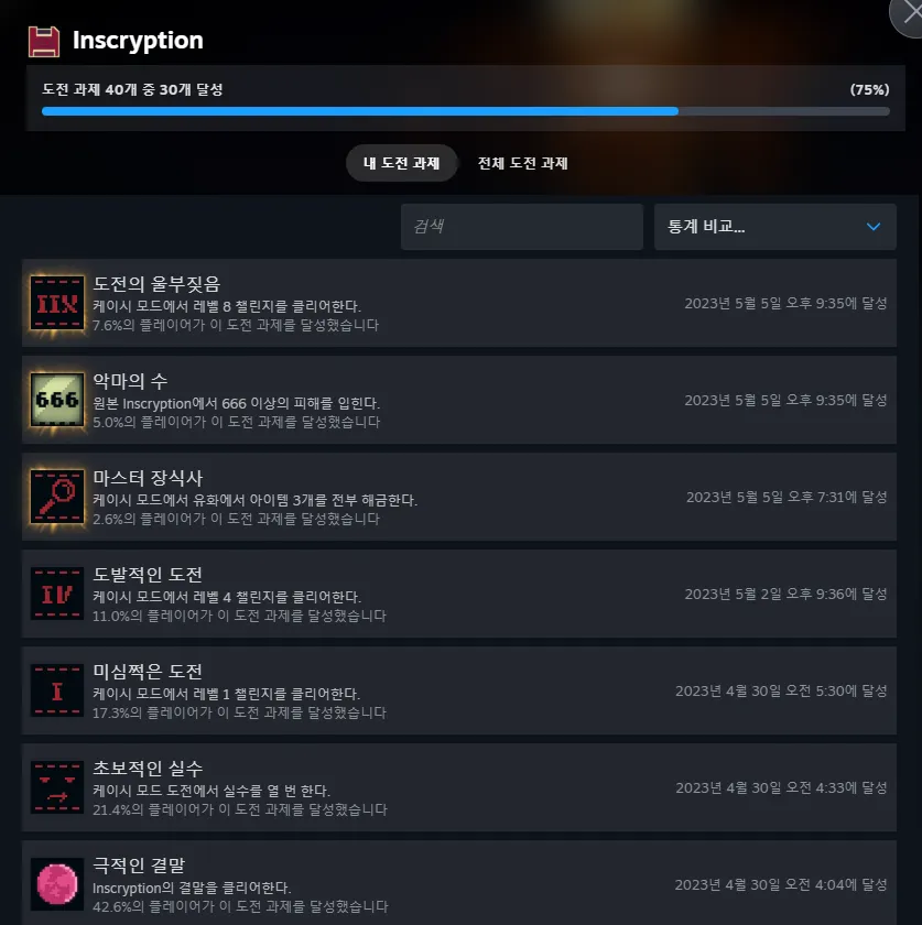 케이시모드는 스토리를 모두 깬 이후 등장하는 순수 전략 덱빌딩 게임이다. 점점 난이도가 높아져서 끝까지 깨지는 않았고 레벨 8 챌린지 클리어 정도에서 마무리했다.