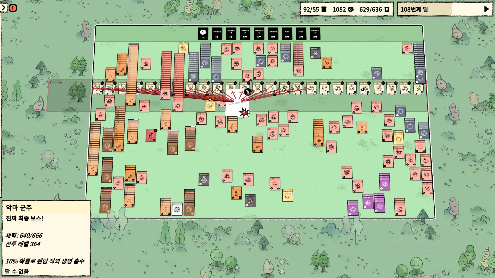 정신이 나갈 것 같은 전투 장면. 전투가 끝나고 나면 육지의 카드 배열들이 초토화된다.