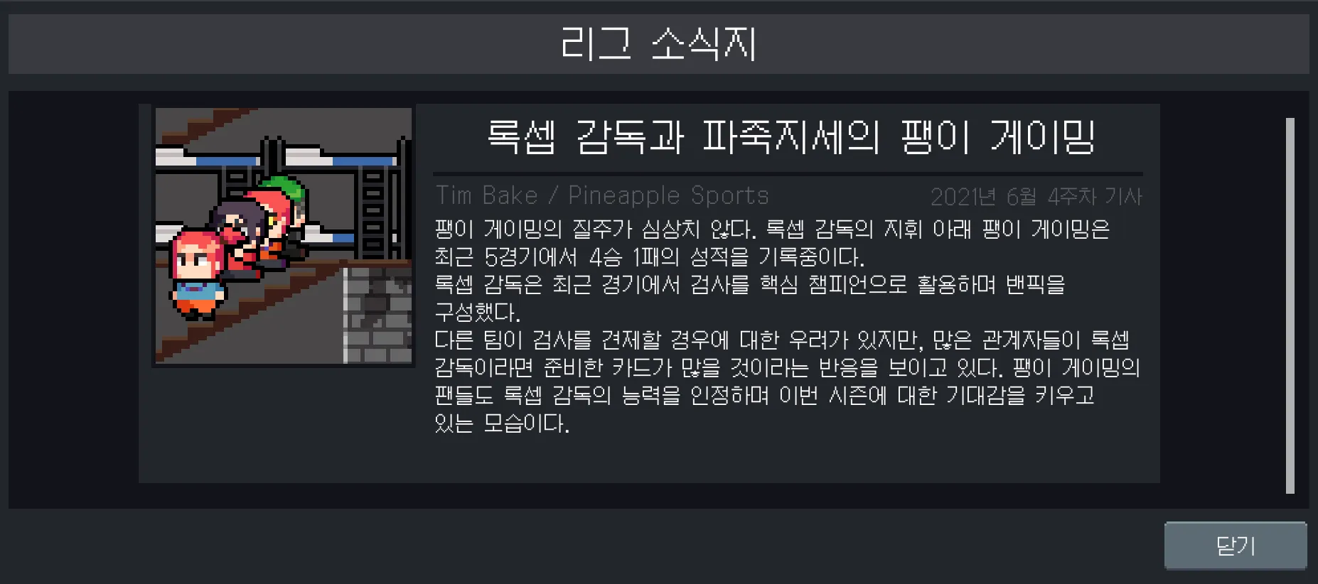 football manager와 비슷하게 중간중간 리그 소식지를 전해주기도 한다.