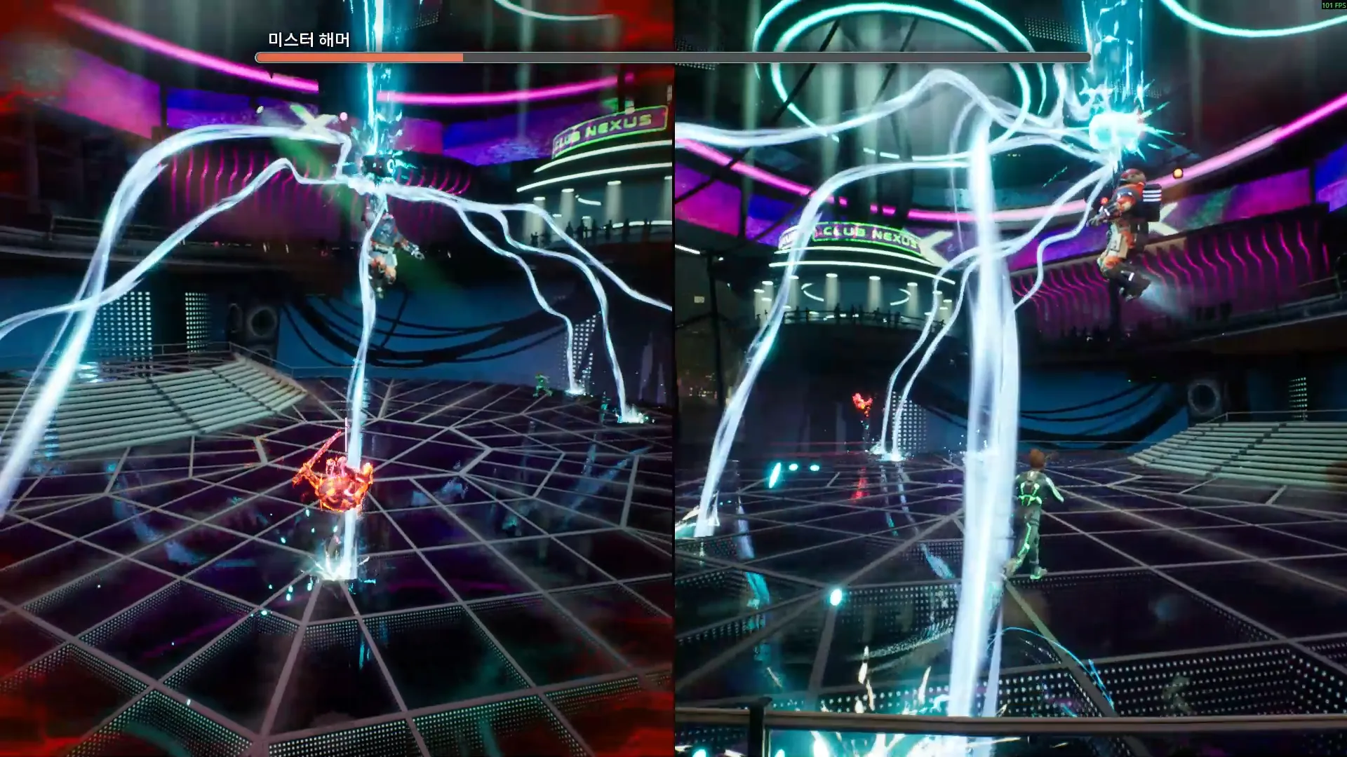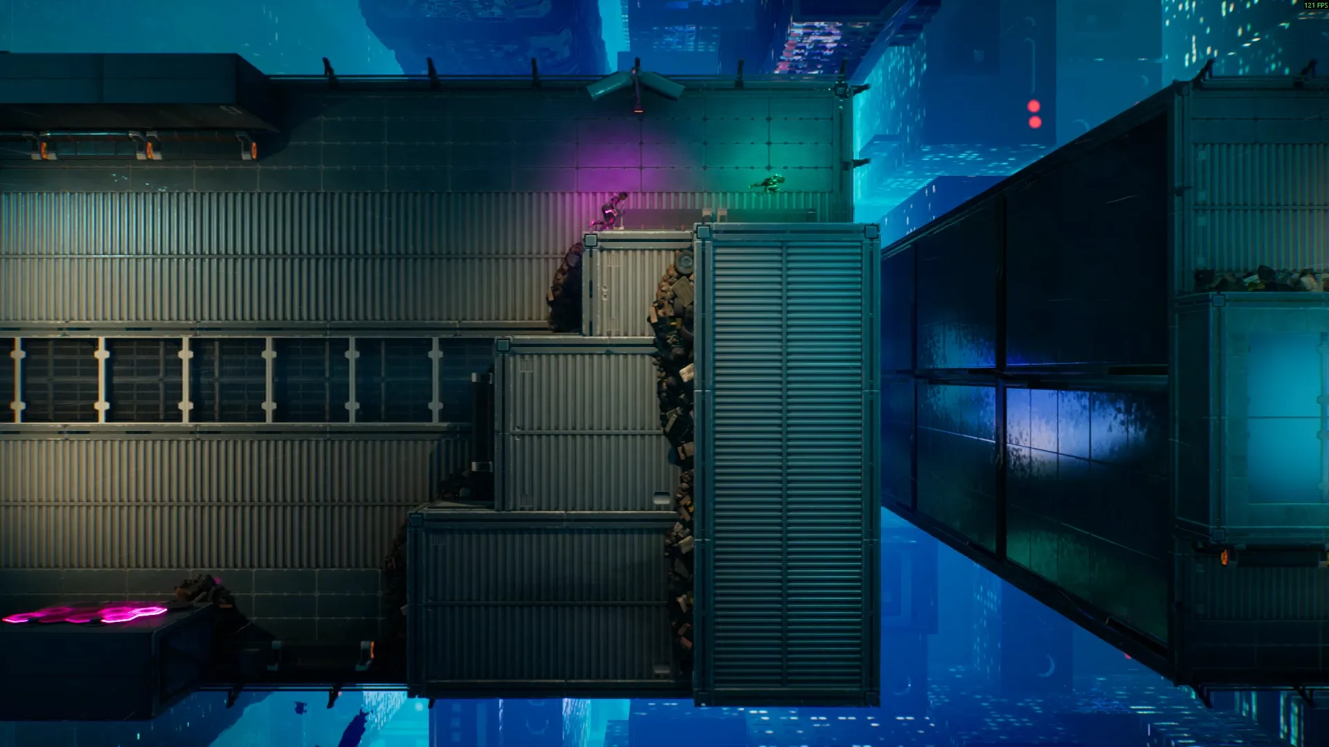 두 플레이어의 화면이 합쳐지는 경우도 나온다. 그러나 두 플레이어가 온전히 같은 플레이 경험을 가지게 되는 경우는 드물다. 위 사진에서는 두 플레이어에게 다른 중력이 작용한다.