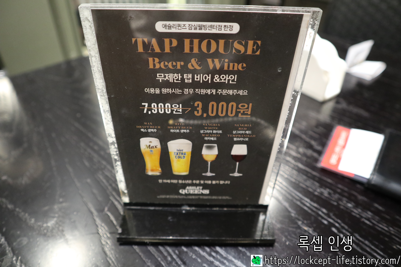 무제한 맥주는 7900원이고 와인은 3000원이다.