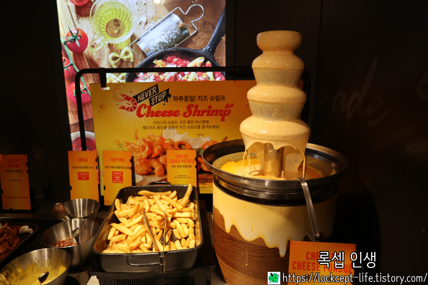 예를들면 옆의 콘치즈라거나~ 다양한 종류의 고기라거나~ 샐러드라거나~