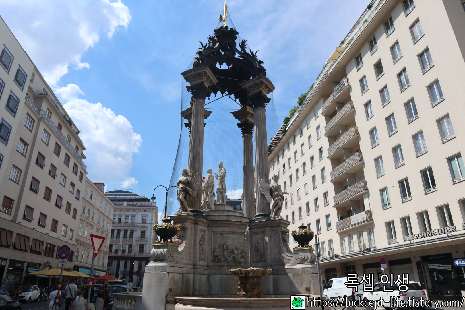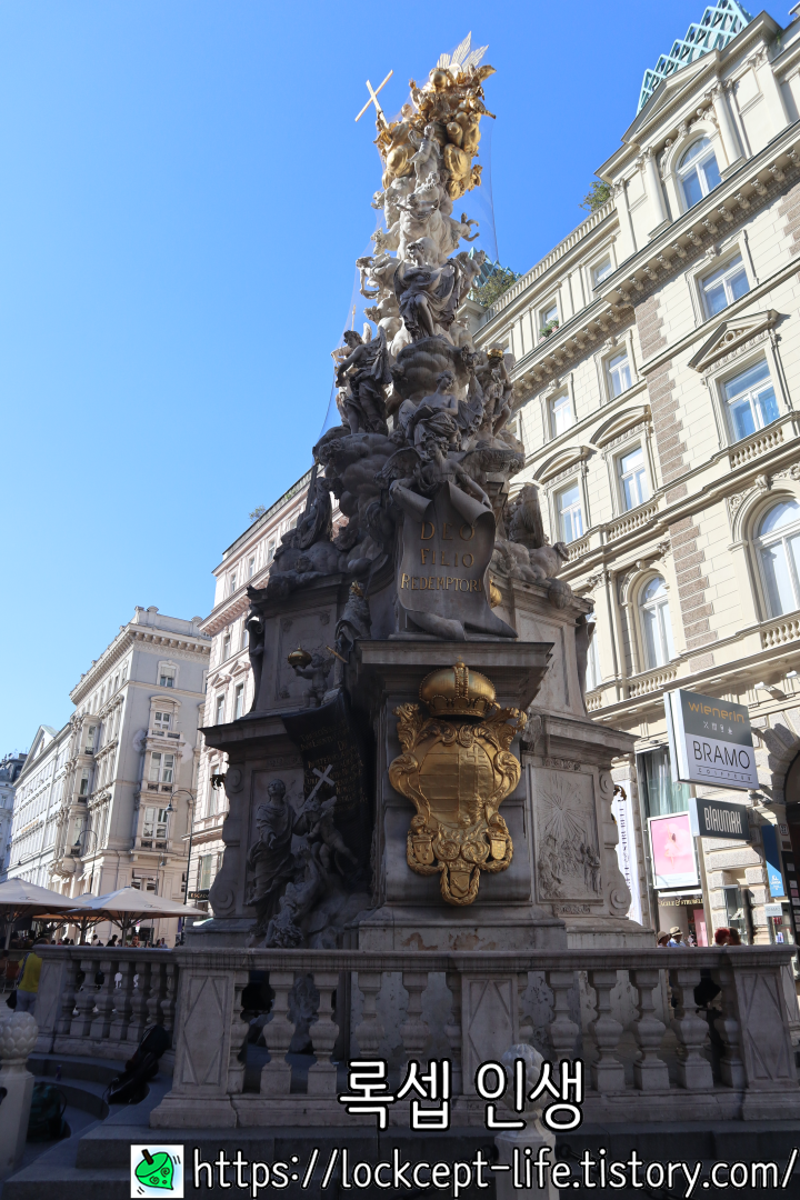 그라벤은 '구덩이'라는 뜻으로 로마제국이 빈을 통치할 때 만든 군사용 참호에서 유래했다고 한다. 이 페스트 탑은 중세 유럽을 공포에 몰아넣은 흑사병의 박멸을 기념하기 위한 기념물이다.