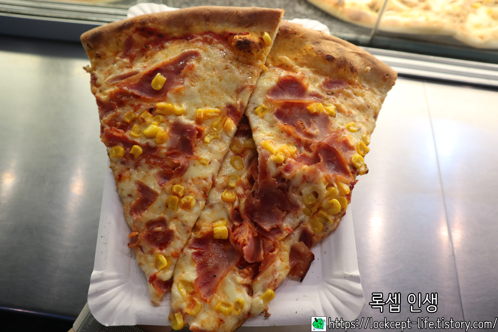 야경을 보기위해 시간을 때운후 저녁을 길거리 피자로 먹었다. 3유로였는데 너무 많았음 ㅋㅋㅋ 난 당연히 한 쪽만 주는줄 알았다.