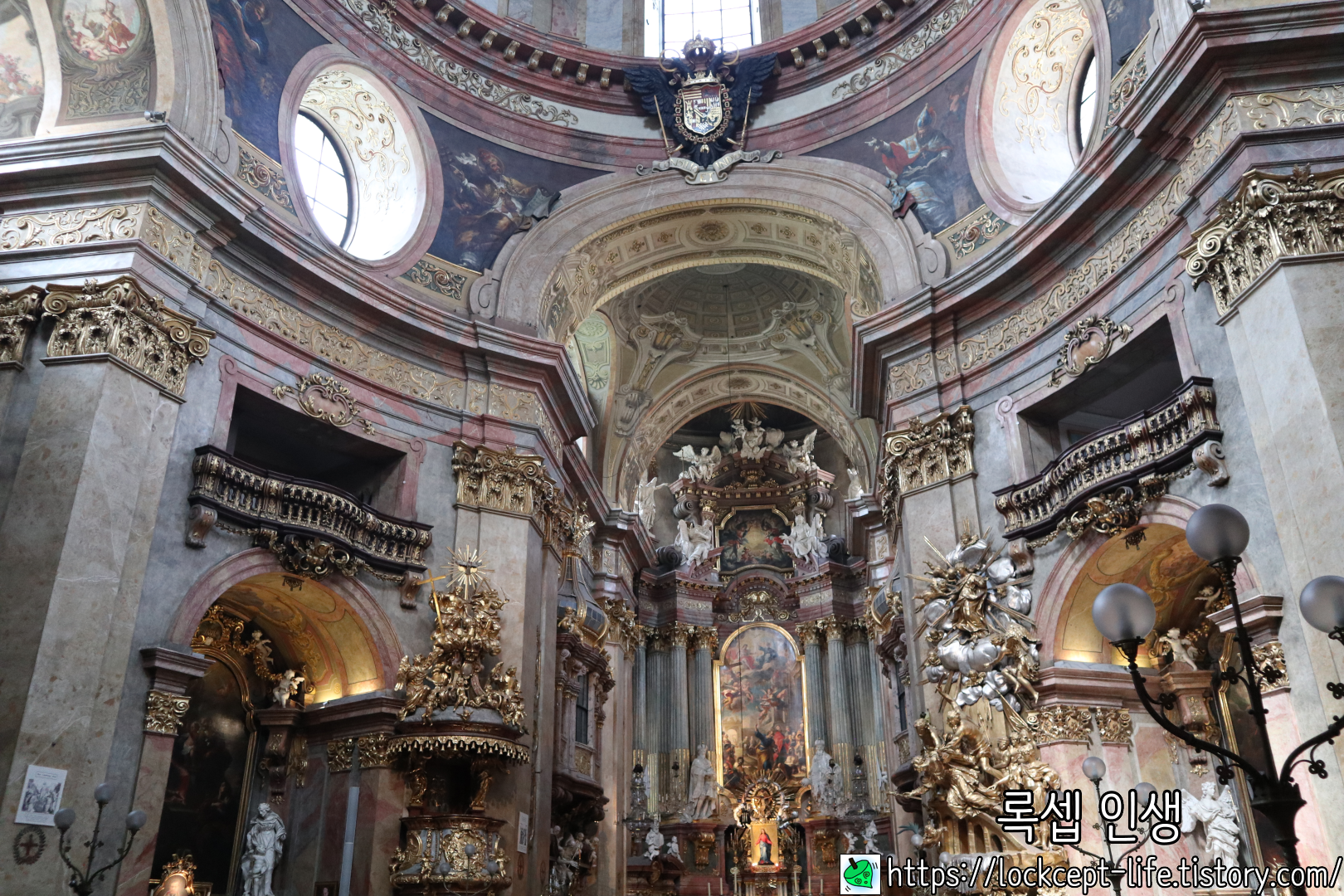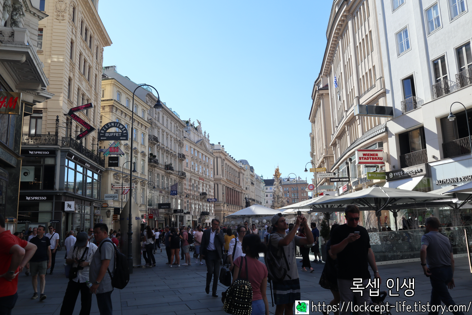 그라벤 거리를 걷다보면 우측에 보이는 성 페터 성당이다. 시간을 잘 맞춰가면 오르골 연주도 감상할 수 있다.