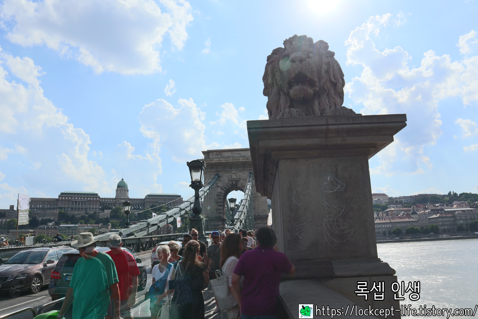 세체니 다리의 양쪽 입구를 지키고 있는 네 마리의 사자상. 근데 혀가 없다. 그래서 헝가리에서 '사자가 울면' 이라는 표현은 불가능한 일을 뜨한다고 한다.