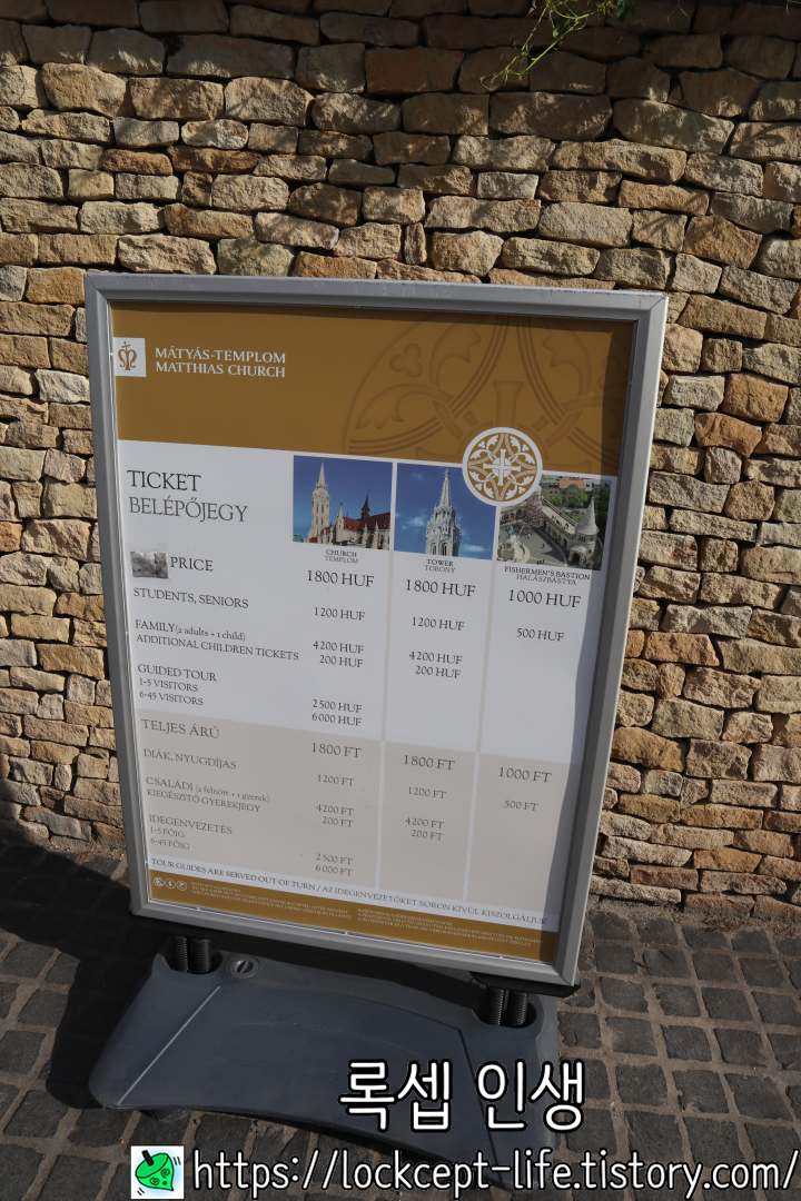 어부의 요새 입장료는 1000ft. 학생 요금은 절반이다.