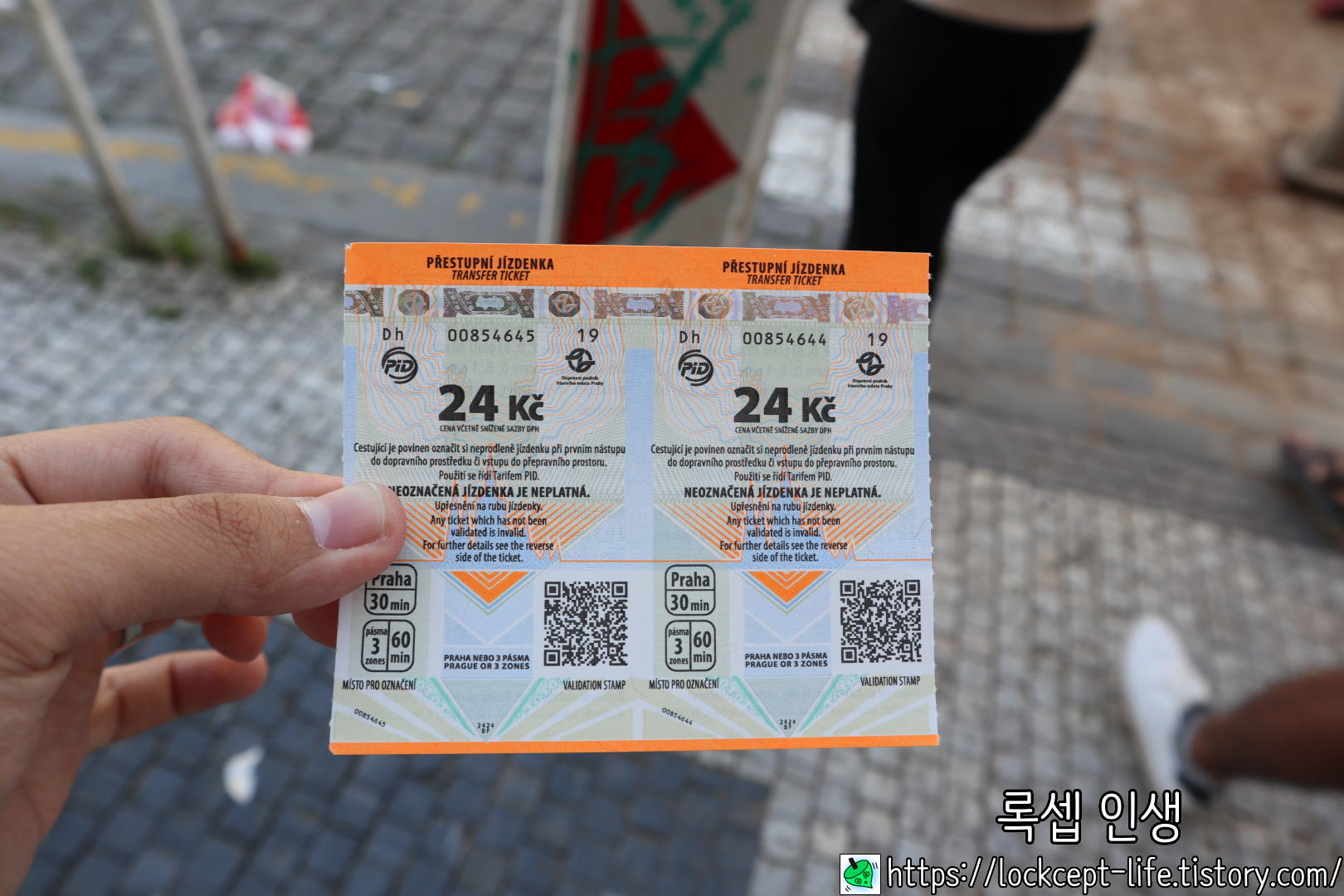 프라하의 대중교통 이용권. 30분 편도 사용에 24코루나 (약 1200원) 이었다. 동유럽이 서유럽보다 물가가 싸긴 한듯