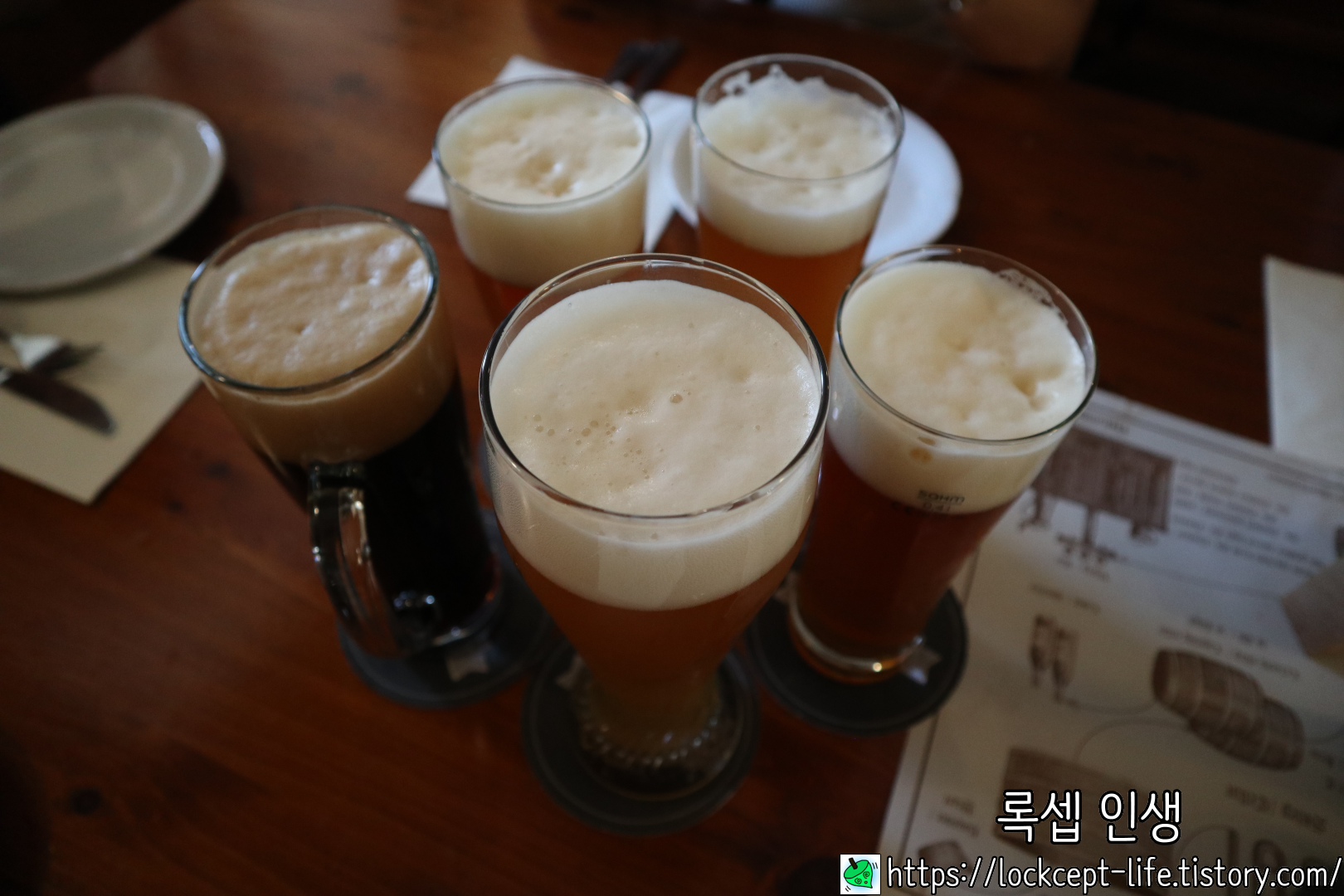 양조장에서 직접 양조한 맥주를 마실 수 있다. 나는 밀맥충이라 밀맥주를 마셨다.