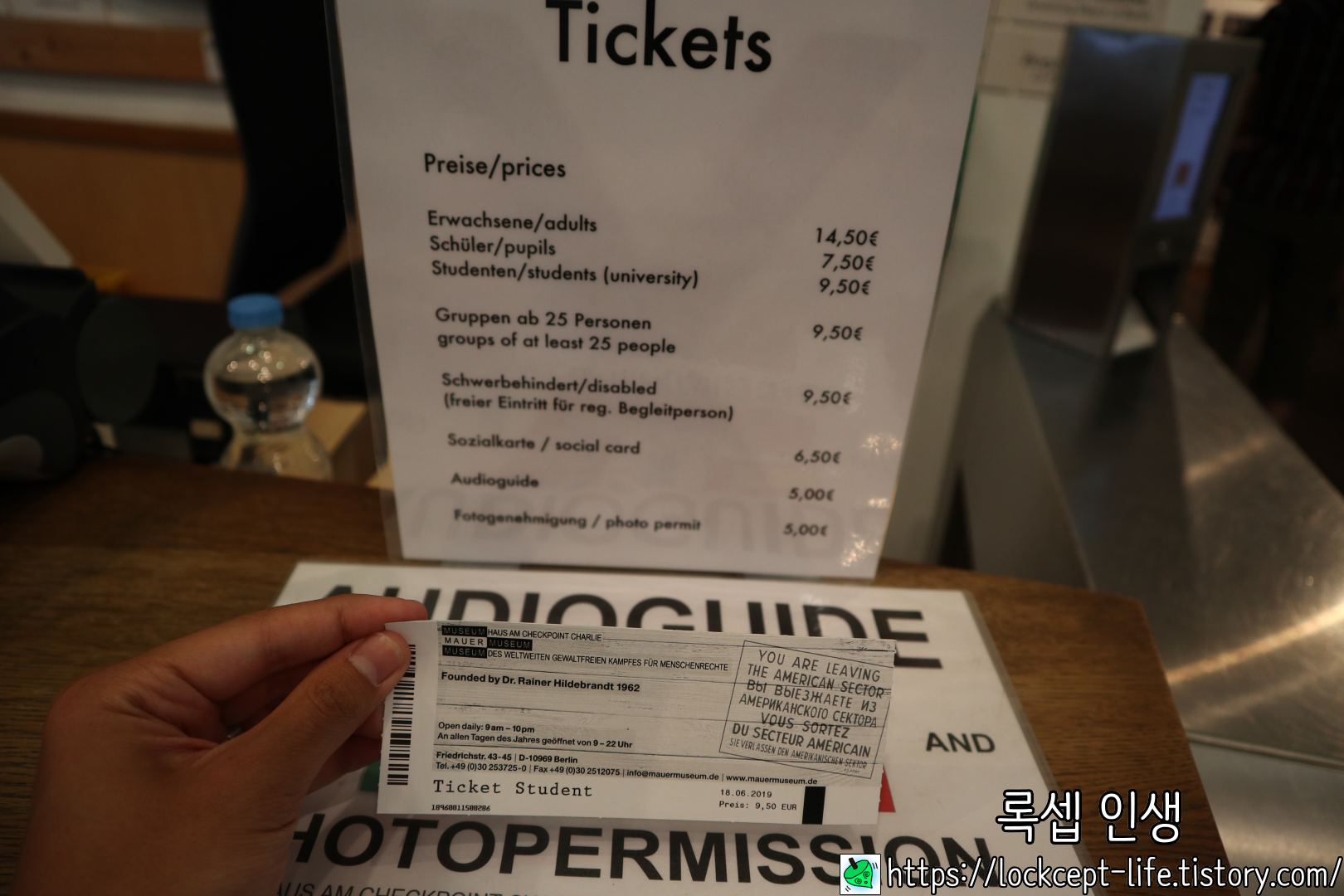 학생 9.5유로. 사진을 찍고 싶으면 사진 비를 5유로 내야한다. 굳이 그러고 싶지는 않았다.