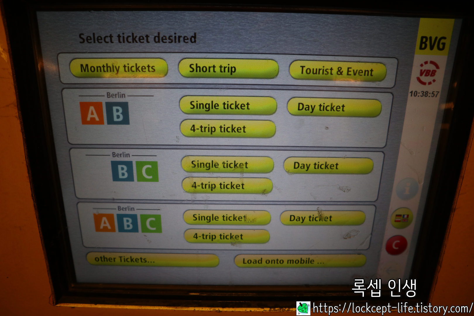 AB존 1회권 2.8유로, AB존 1일권 7.0유로, ABC존 1일권 7.7유로 이니 참고하자.