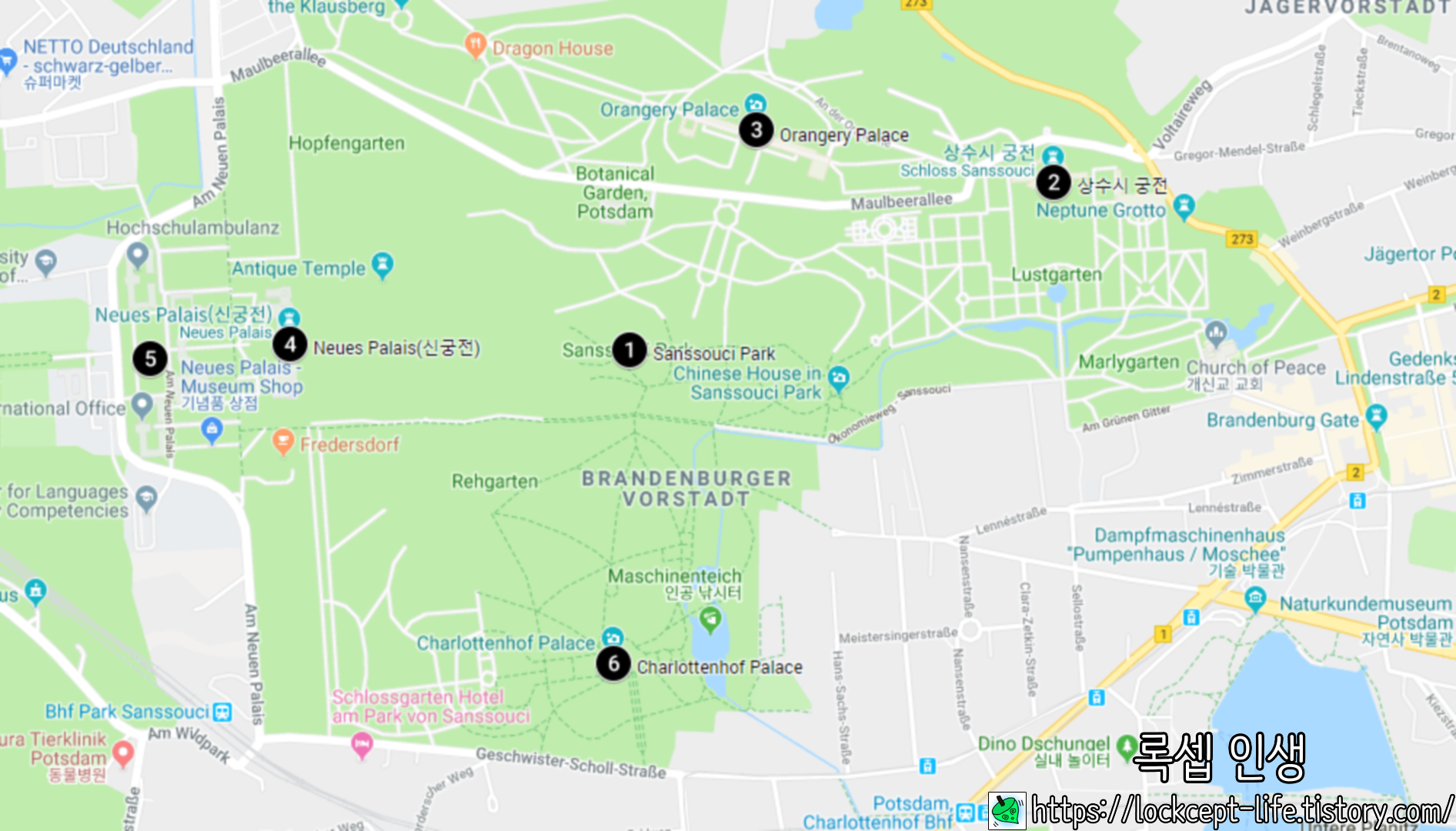 포츠담 역에서 버스를 타고 갈 수 있다.