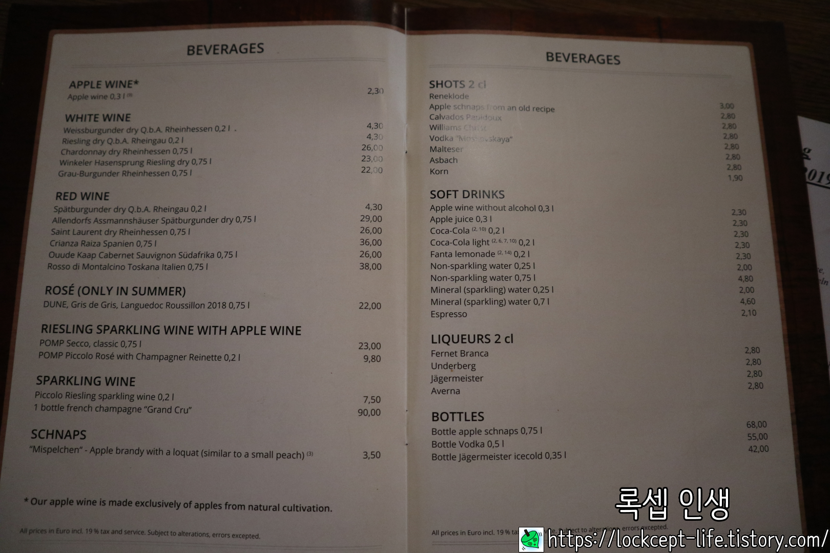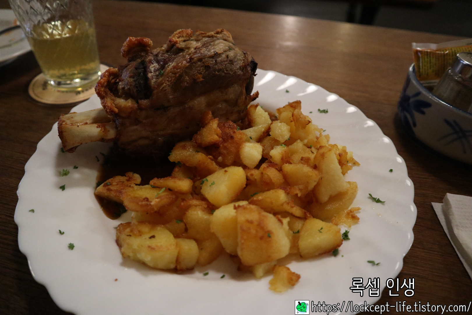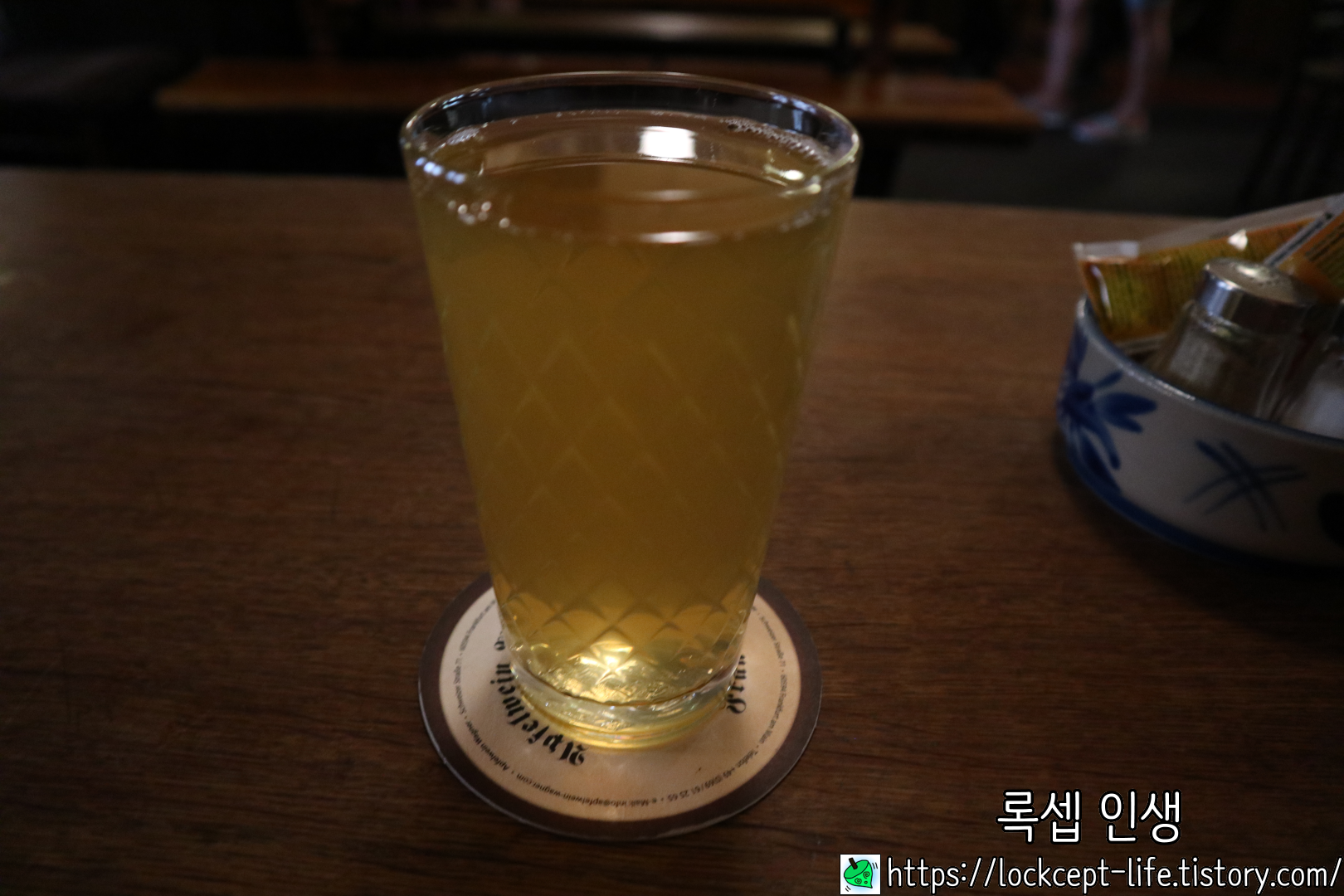 슈바인 학센과 애플 와인을 시키는게 정석이다. 애플와인의 도수는 5도 내외인데 생각보다 시다.