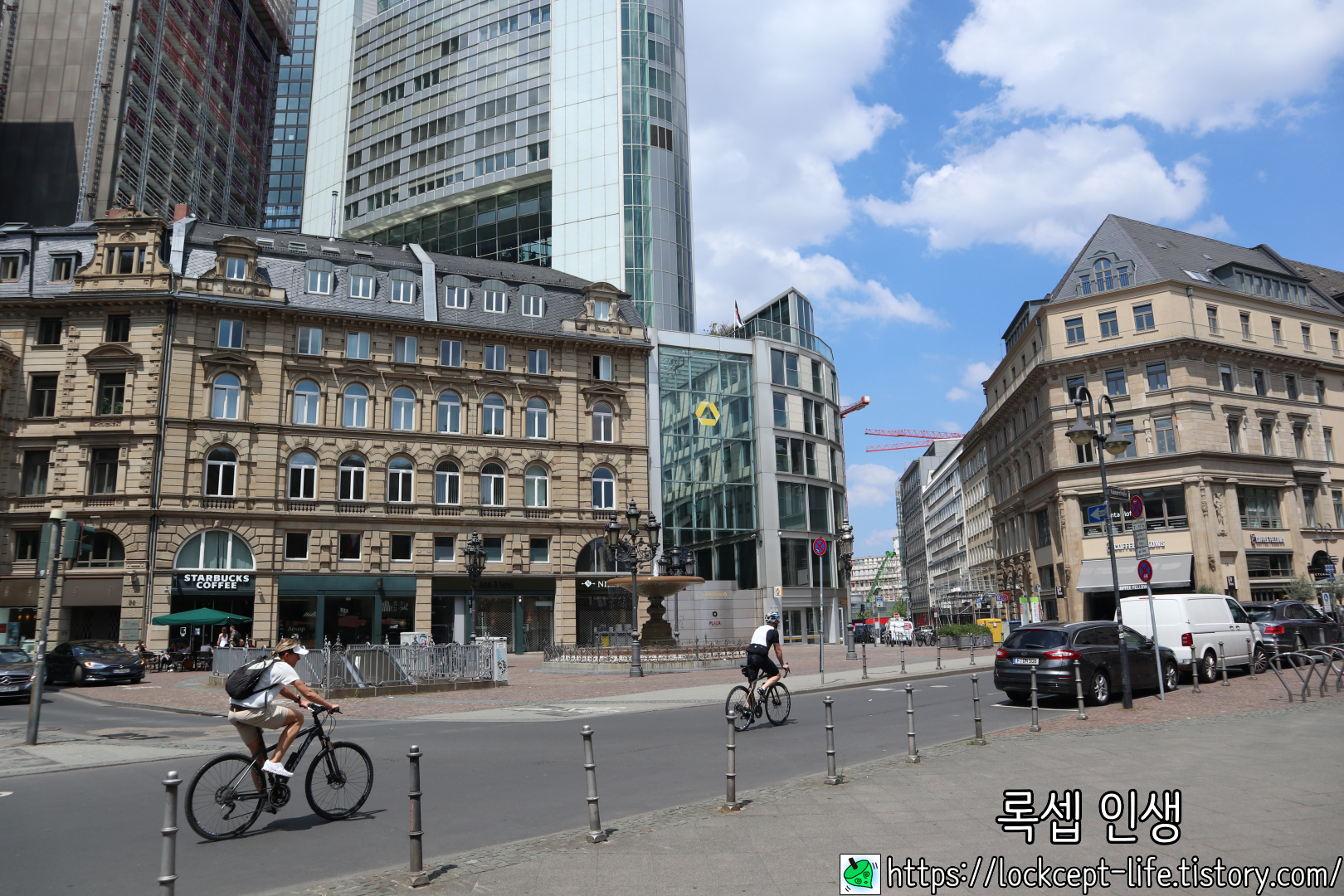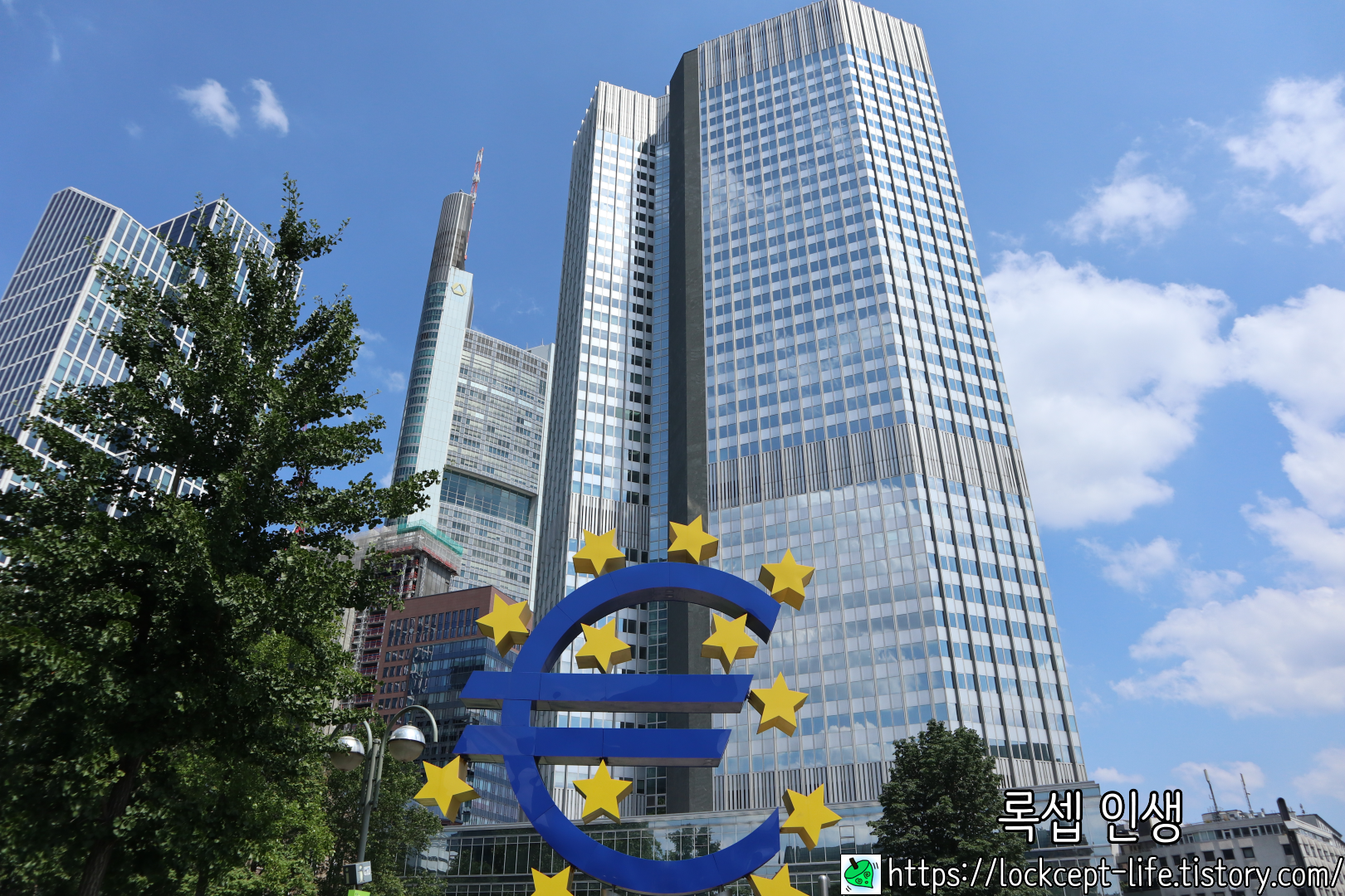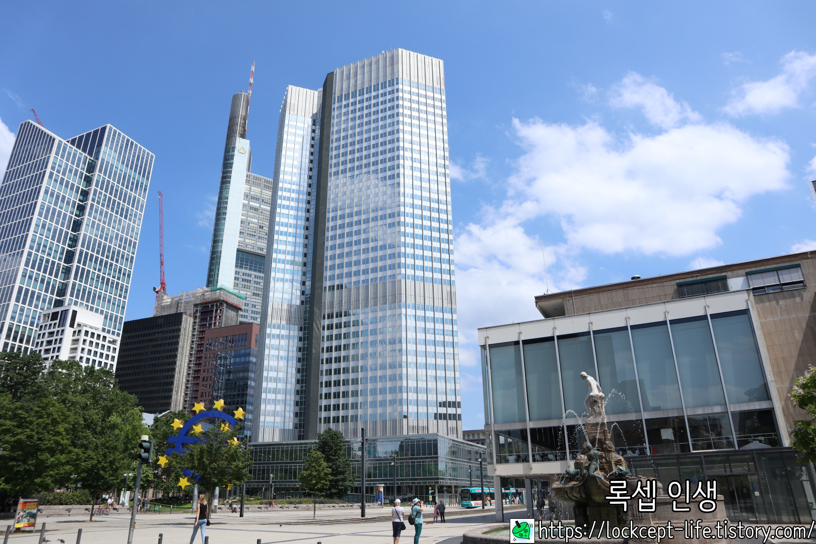 커다란 유로 마크가 있는 이 건물은 유로타워이며 유럽 중앙은행도 이 빌딩에 자리하고 있다.