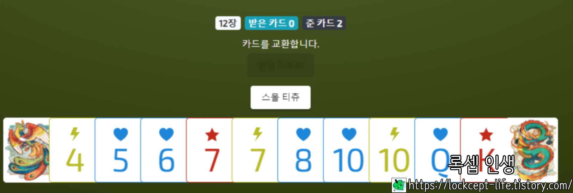 대신 단점으로는 용으로 먹은 카드 더미는 본인이 가져가는 것이 아니라 적 팀 두 명 중 한명한테 주어야 한다.