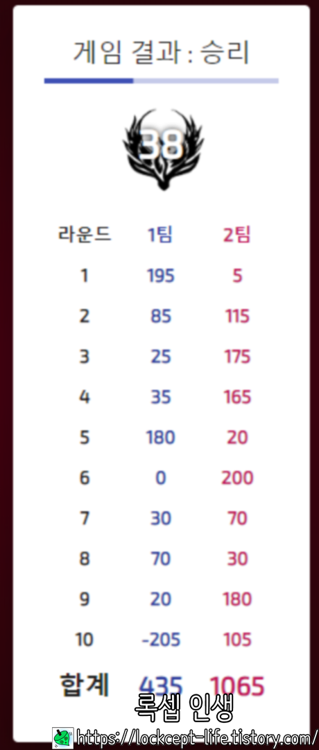 만약, 1000점을 동시에 넘긴다면 더 큰 점수를 가지고 있는 팀이 승리하며 동점이라면 승부가 결정날 때 까지 라운드를 더 진행하게 된다.
