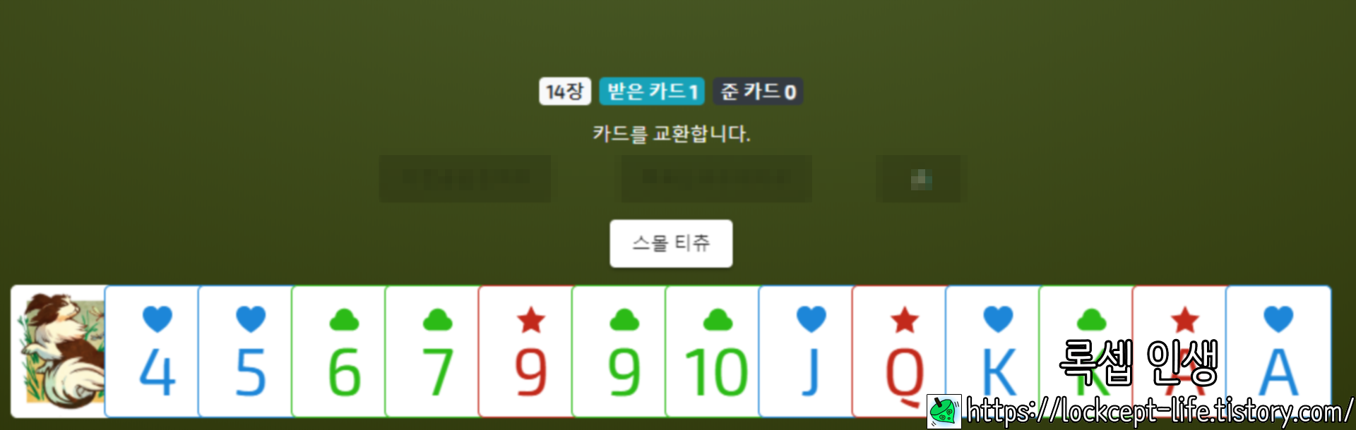 초보자라면 점수카드를 획득하기 보다는 자신의 패를 어떻게 털어서 순위를 높일 것인지에 대해 고민해보자. 하다보면 10 트리플이나 K 풀하우스 같은 것에 눈 돌아갈테지만 ㅋㅋ