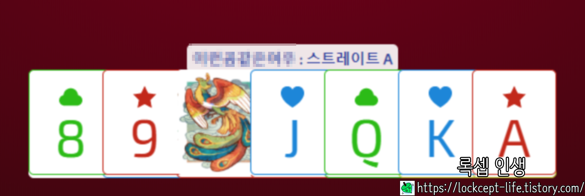 예를 들어 10 위에 봉황을 내면 10.5가 되므로 J이상의 카드로 덮을 수 있다.