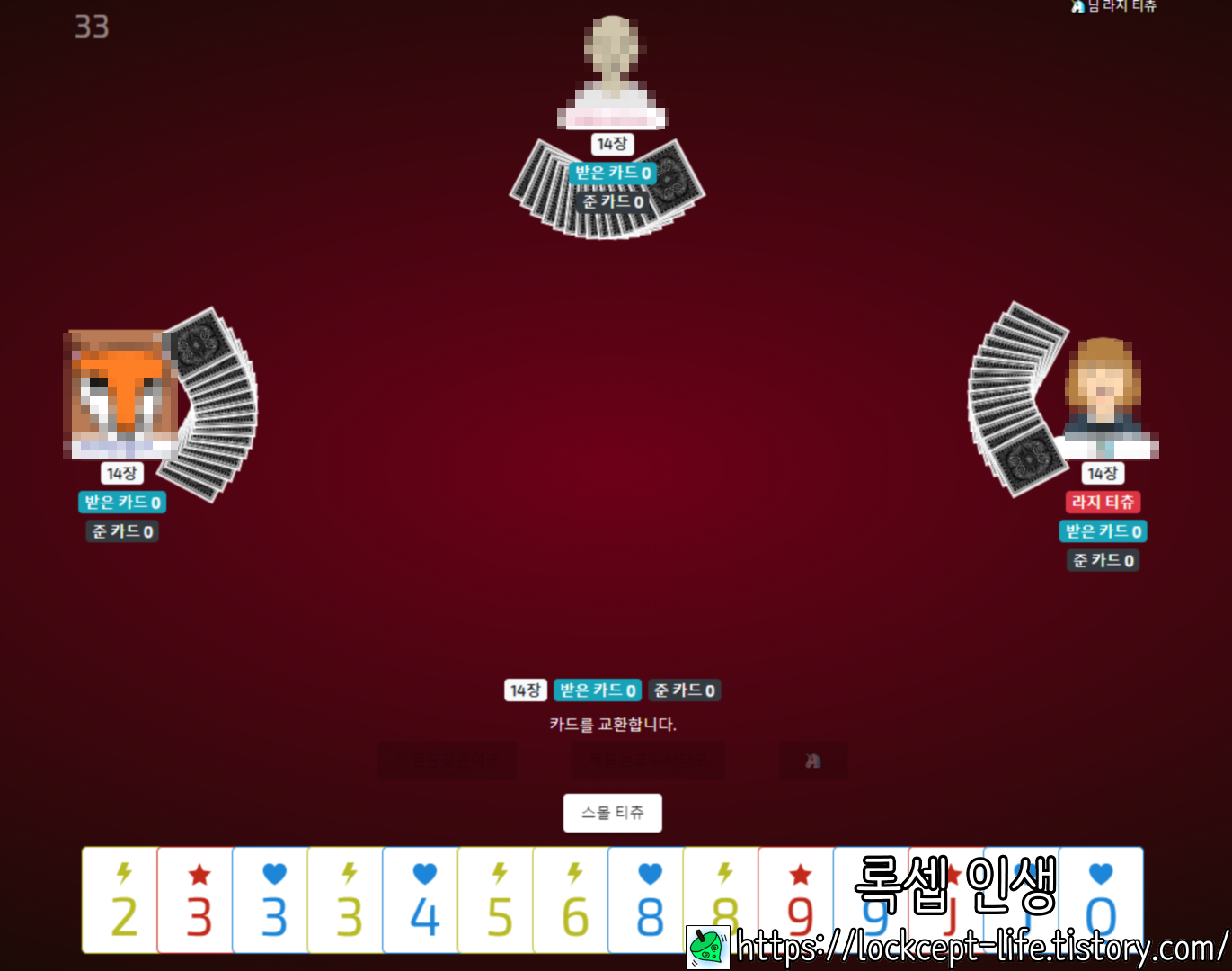 위와 같이 14장의 카드를 가지고 시작하며,