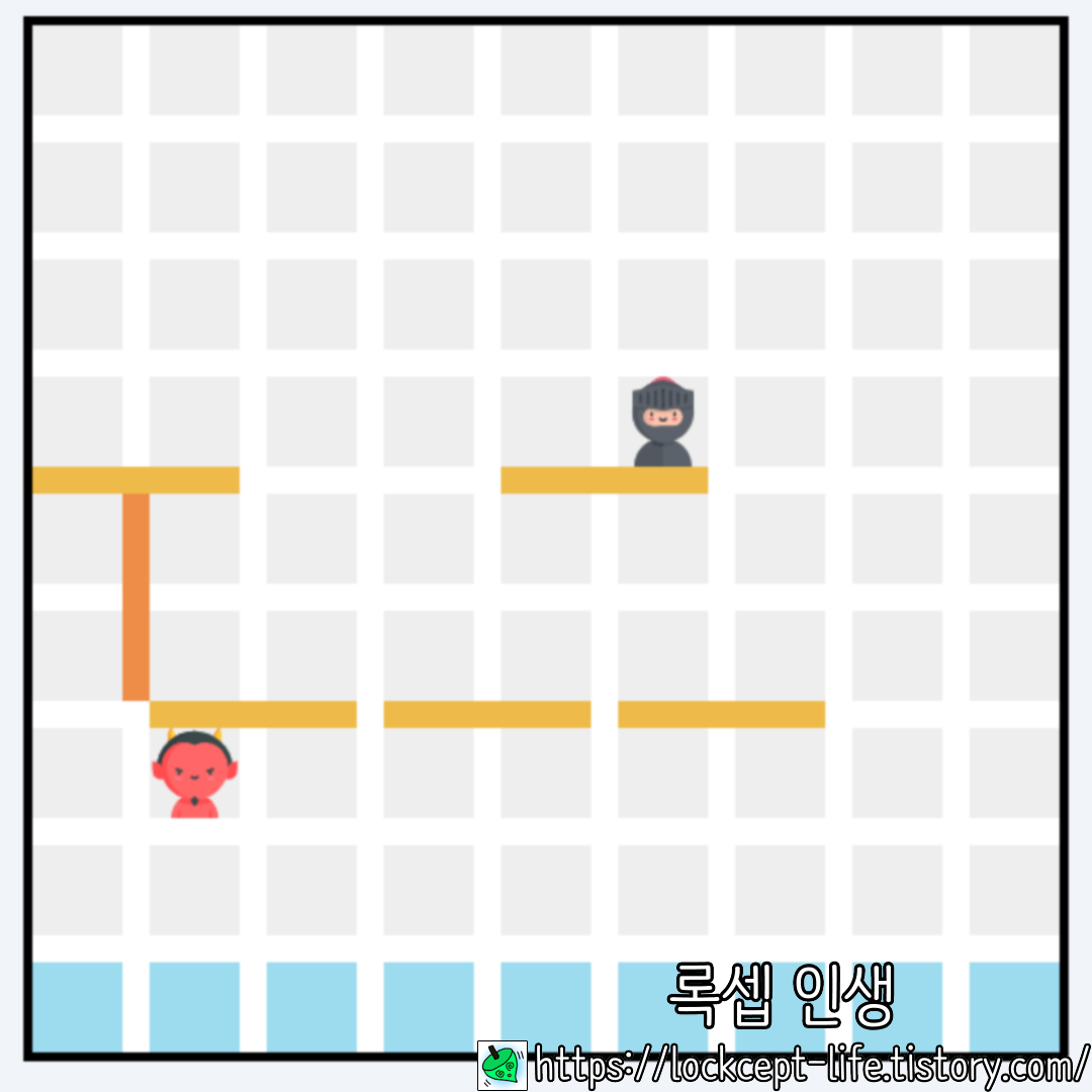 악마가 좌로 가려다가 길이 막혀서 우로 돌아와야하므로 큰 손해이다.