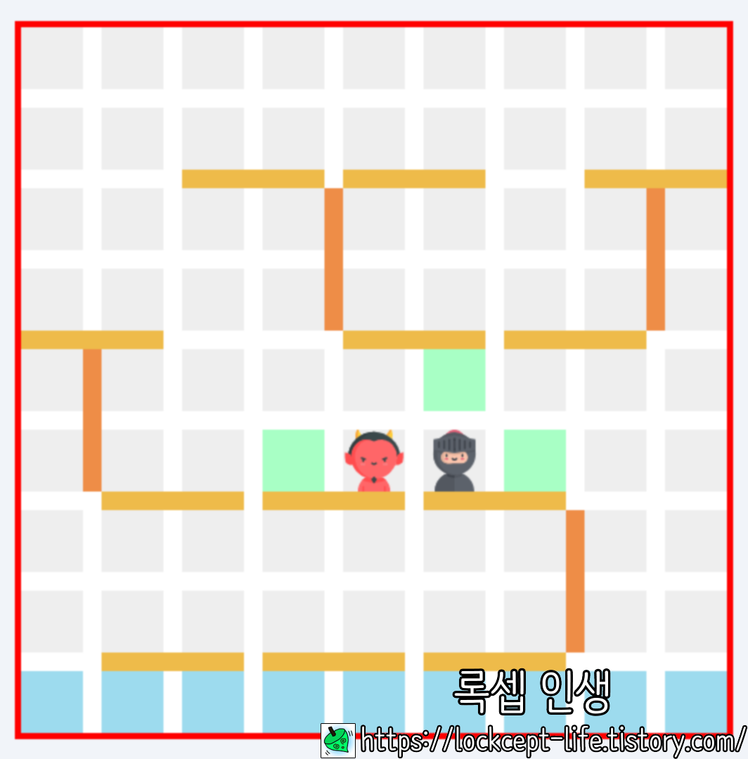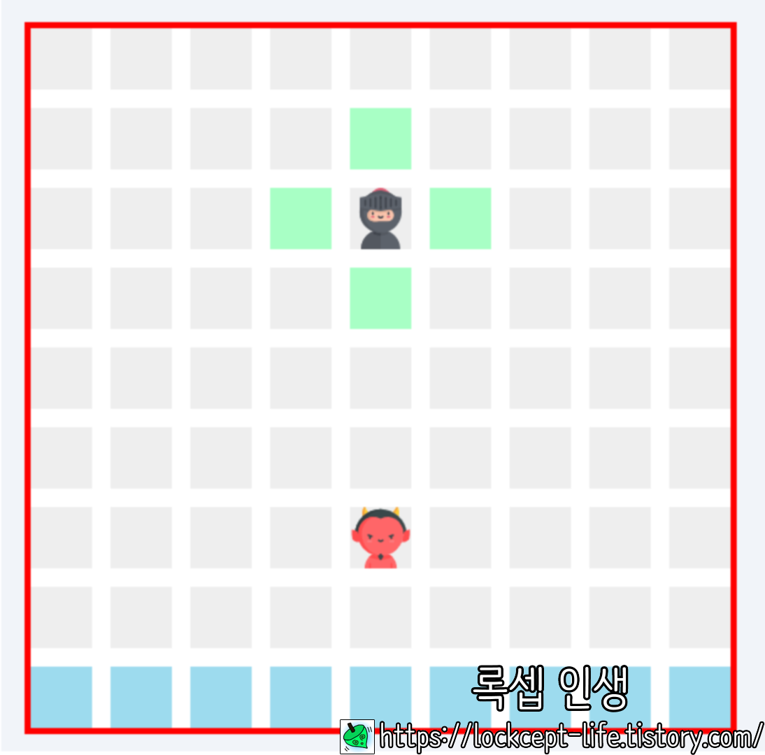 적팀과 마주치면 이렇게 뛰어 넘어서 2칸을 갈 수도 있다.