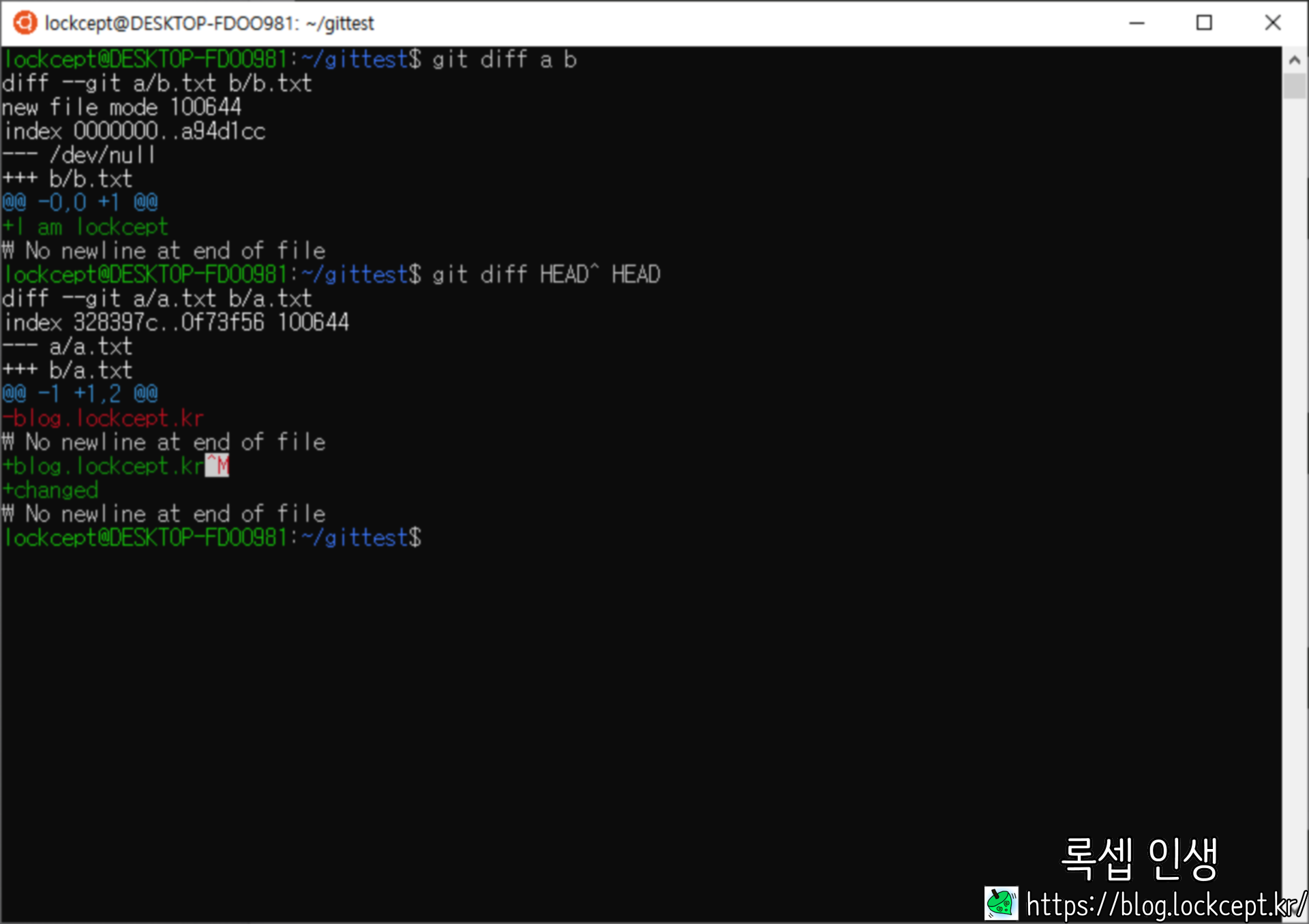 git diff HEAD^ HEAD는 HEAD^ (HEAD 직전 commit)과 HEAD의 차이를 보여준다.