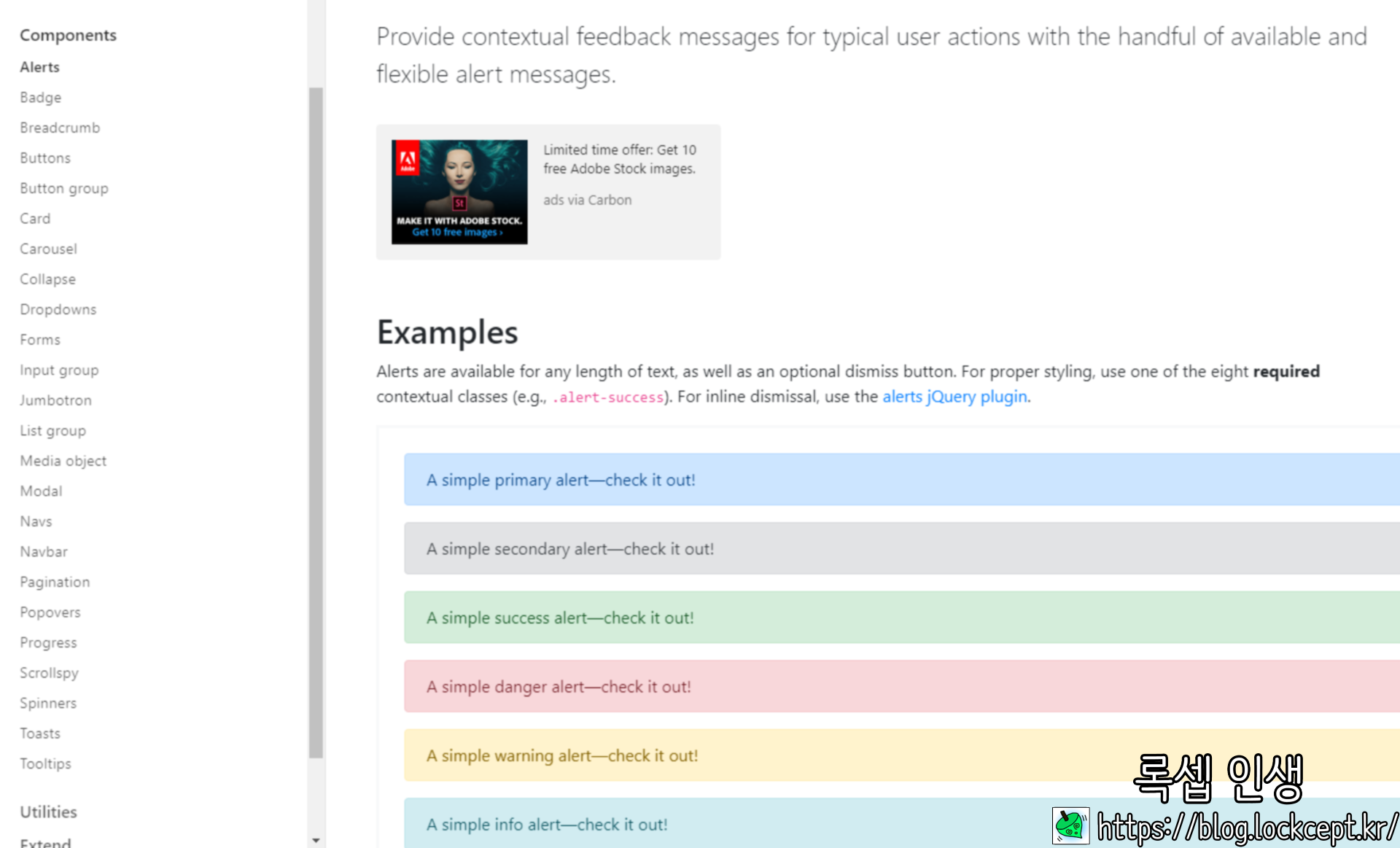 사이트의 좌측을 보면 여러가지 components가 있는데 필요한 부분을 공부하여 사용할 수 있다.