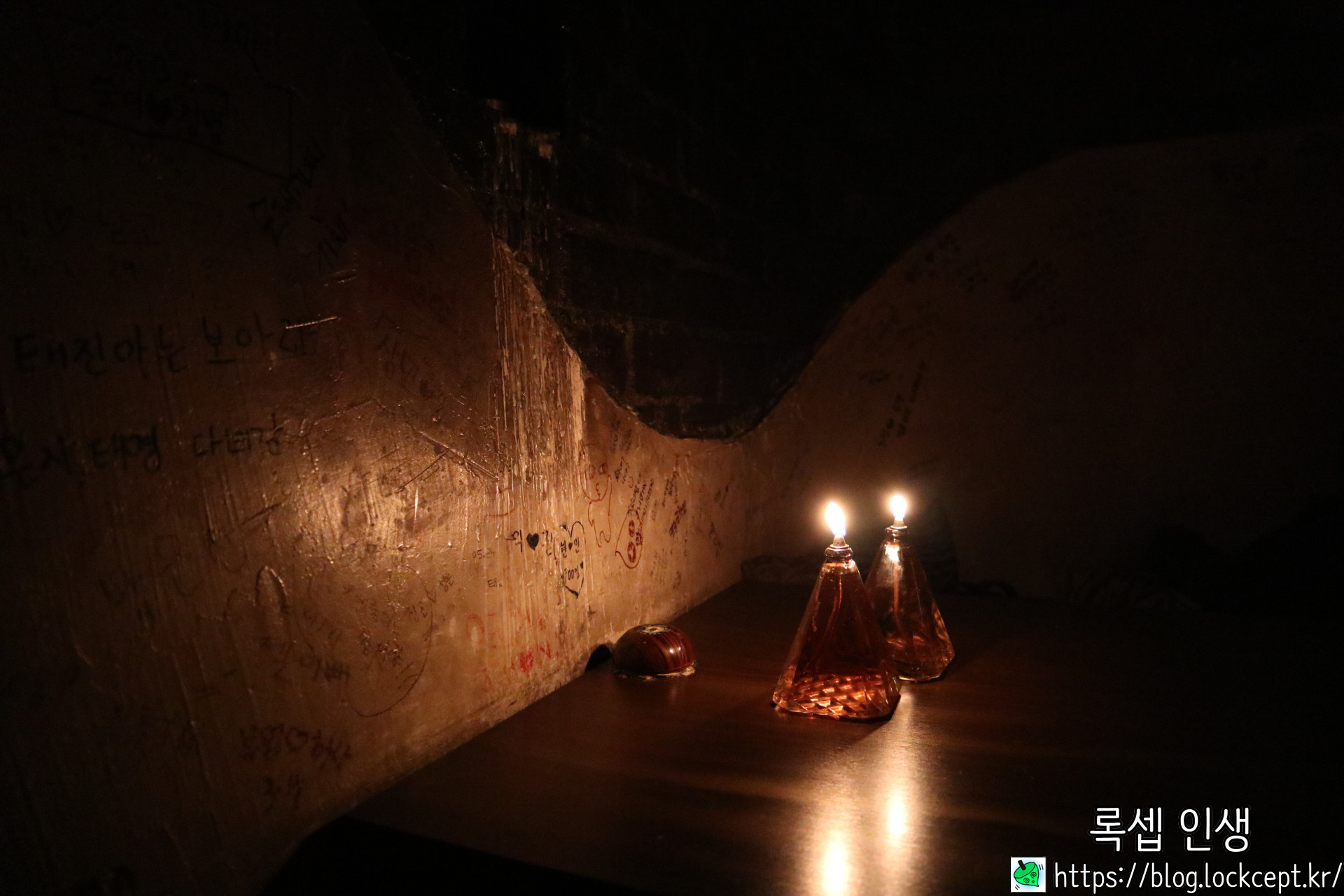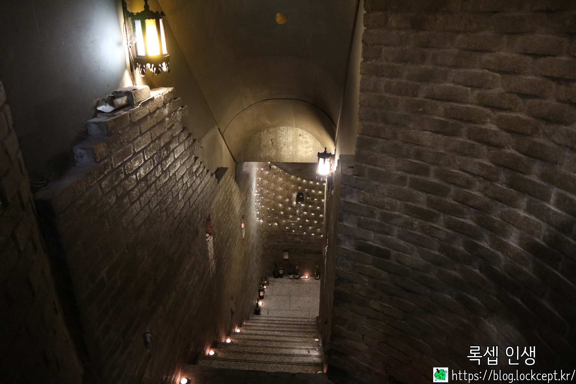 내려가는길 양 옆에는 양초가 켜져있다. 교체하기 힘들겠다 ... ㅋㅋ