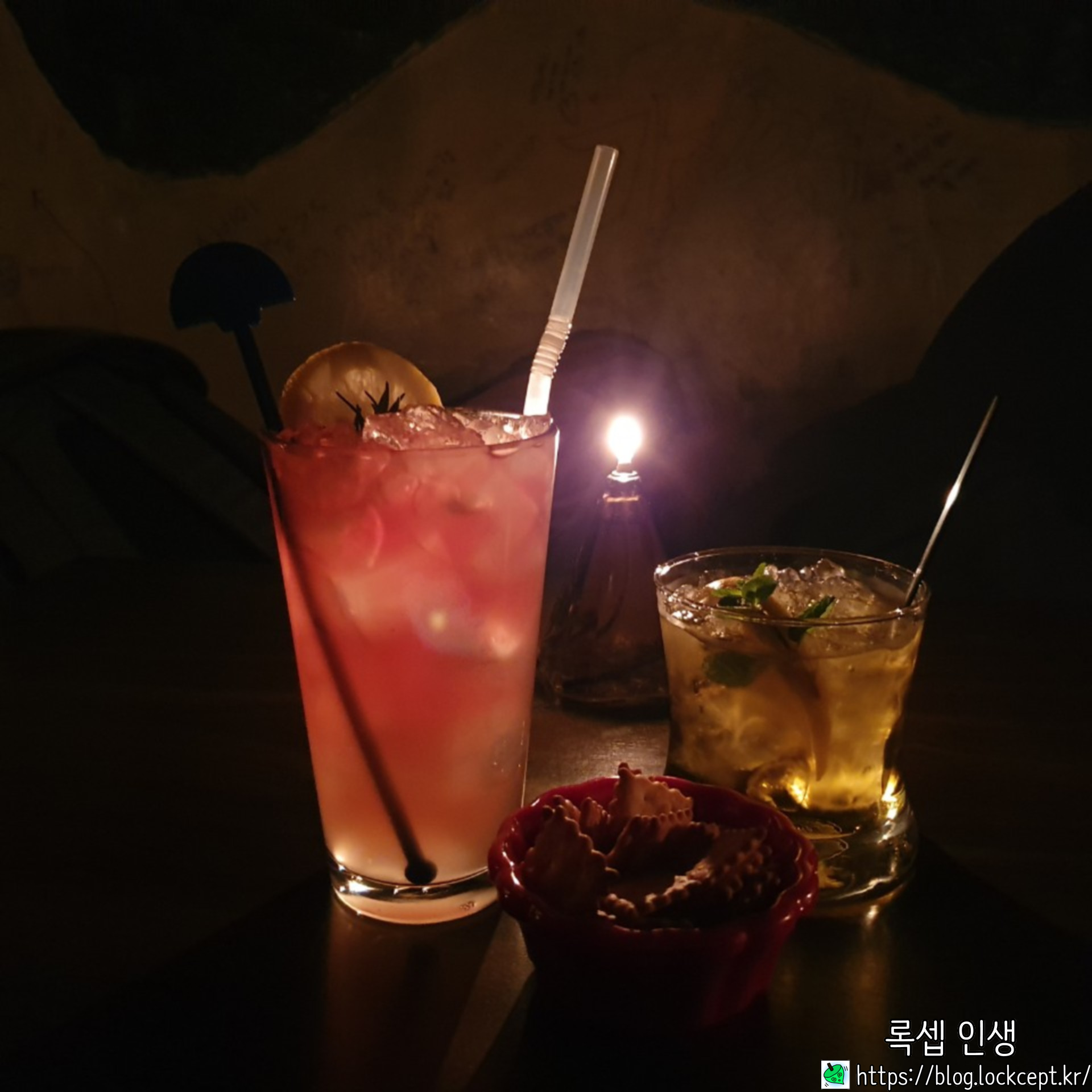 마셨던 칵테일은 8500 / 9500 원이다. 주문 후 메뉴판을 가져가서 찍지 못했는데 칵테일은 술의 세기에 따라 4개로 분류되어있으며 가격은 거의 비슷 했다. 가장 강한 카테고리의 술은 조금 더 비싸긴 했던듯