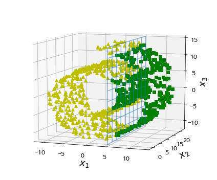 많은 경우 특성들이 강하게 연결되어있어, 훈련 샘플이 저차원 subspace에 놓여있다. 이 경우 훈련 샘플들을 잘 투영하여 저차원으로 만드는 것이 좋다.