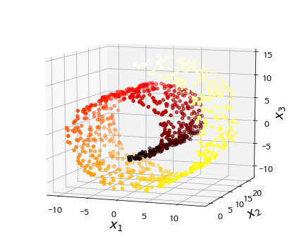 하지만 어떤 경우 데이터가 Swiss roll 처럼 생겨 공간이 뒤틀려있는데, 이런 경우에는 투영하면 더 구분하기 어려워진다.