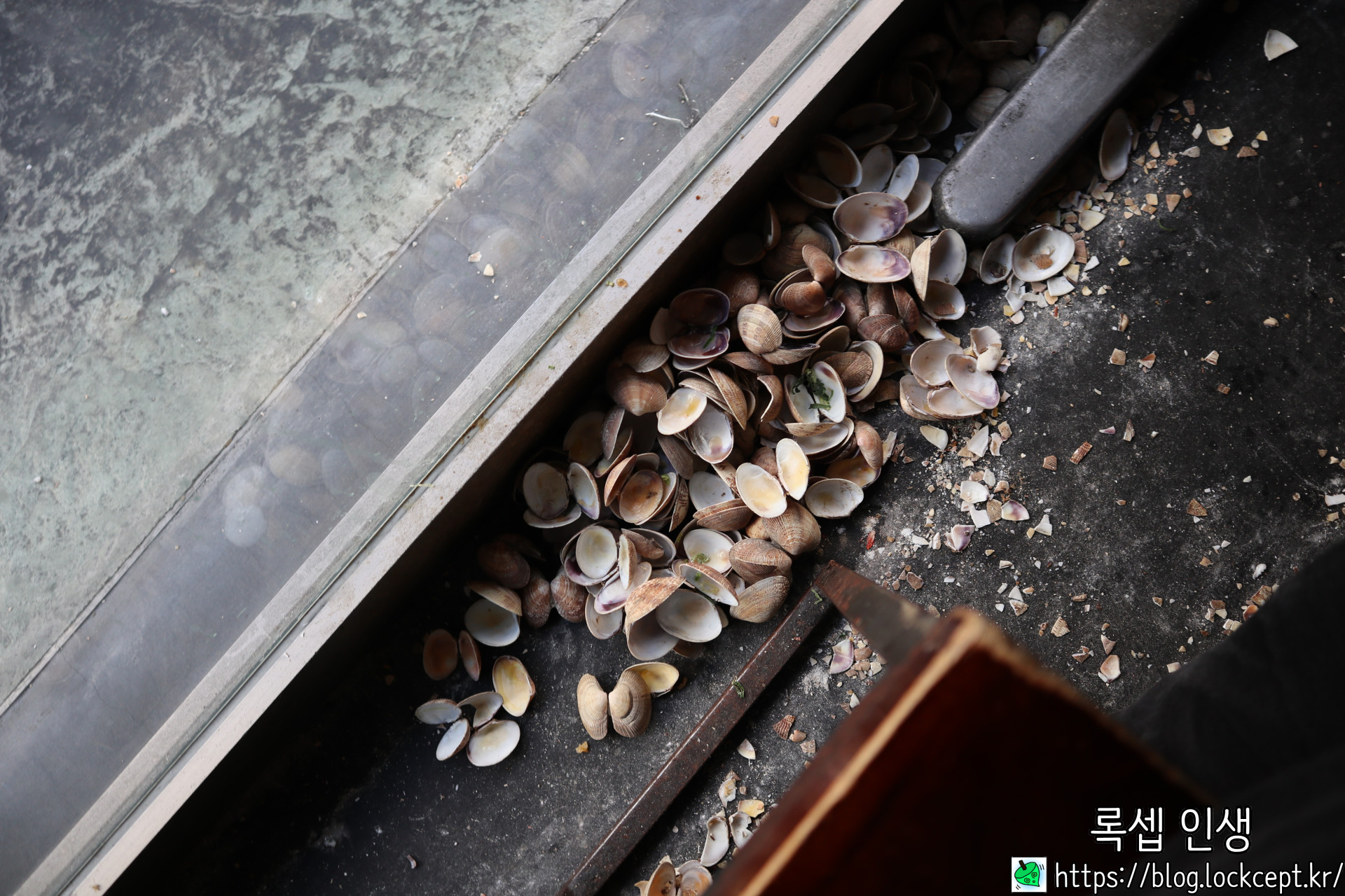 여기는 바지락 된장국이 같이 나오는데 바닥에 바지락 껍질을 버리는게 인테리어라고 한다! ㅋㅋㅋ 그래도 가게에서 냄새는 안났음